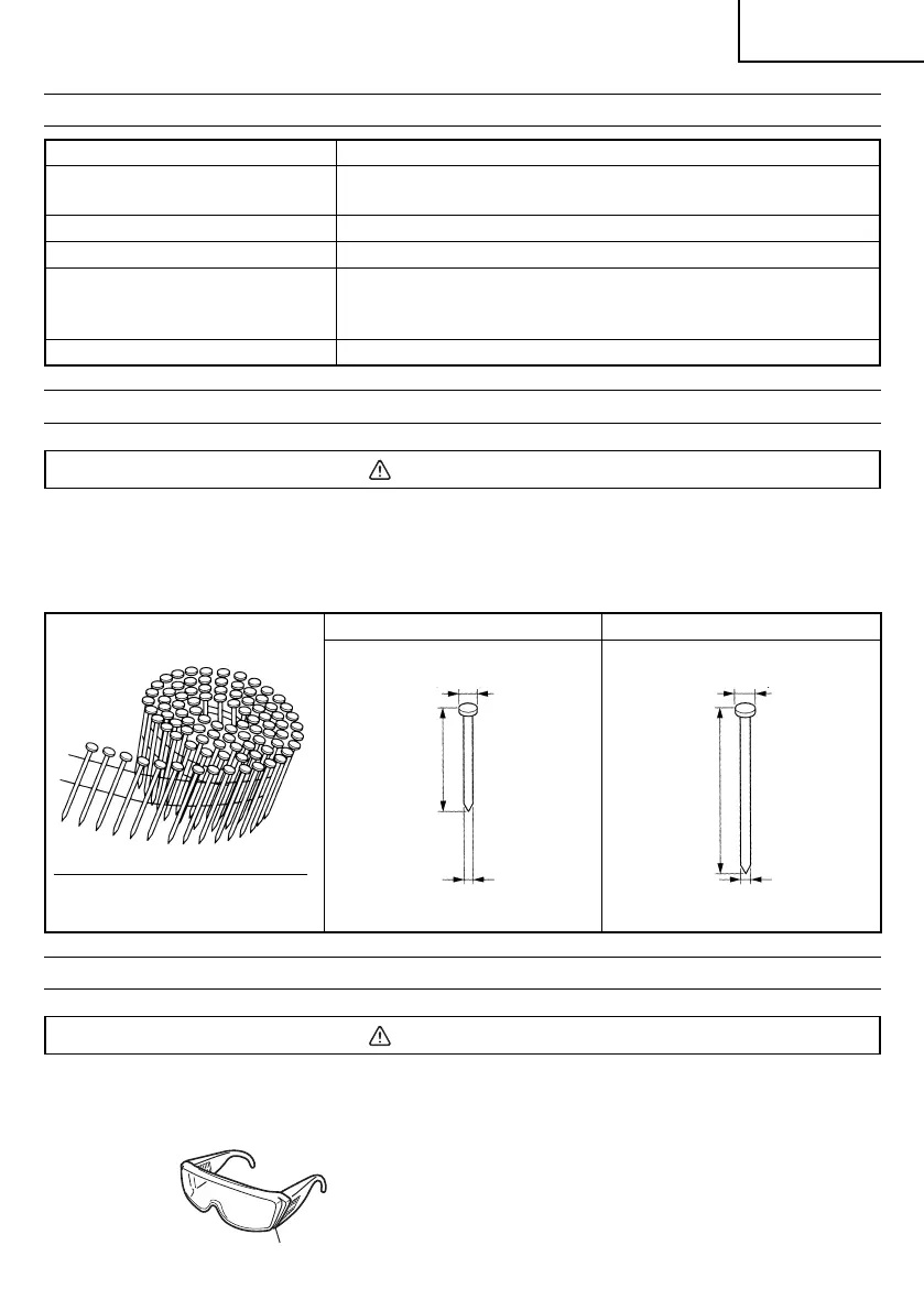 Con este clavador solamente podrán utilizarse los clavos indicadas en la tabla siguiente.