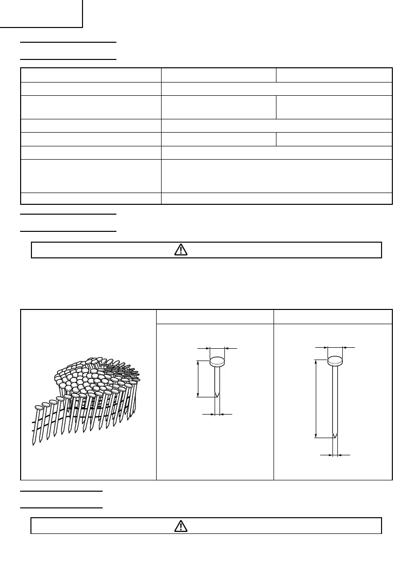 Only nails shown in the Table below can be driven with this Nailer.