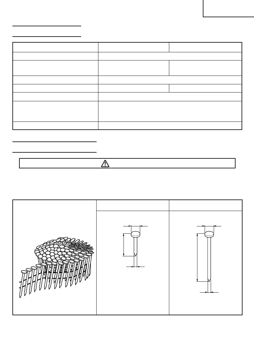 Con este clavador solamente podrán utilizarse los clavos indicados en la tabla siguiente.