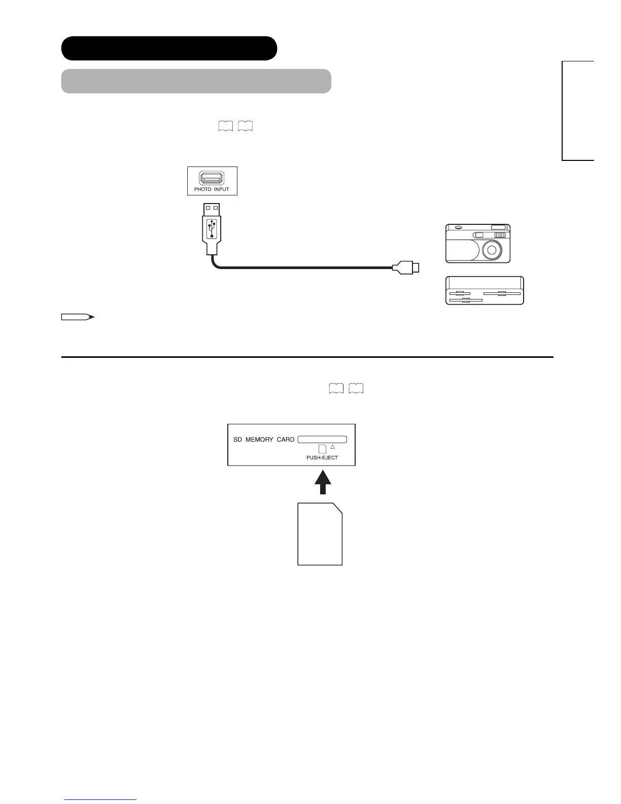 Photo Input terminal can be connected to a digital still camera or USB card reader with USB cable. For details, refer