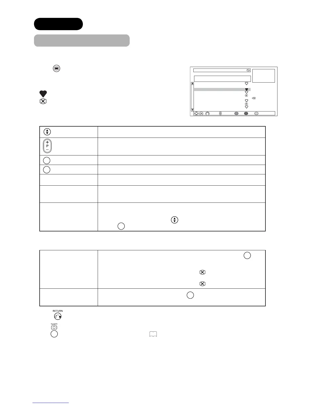 4. You can adjust channel list with the following remote control keys.