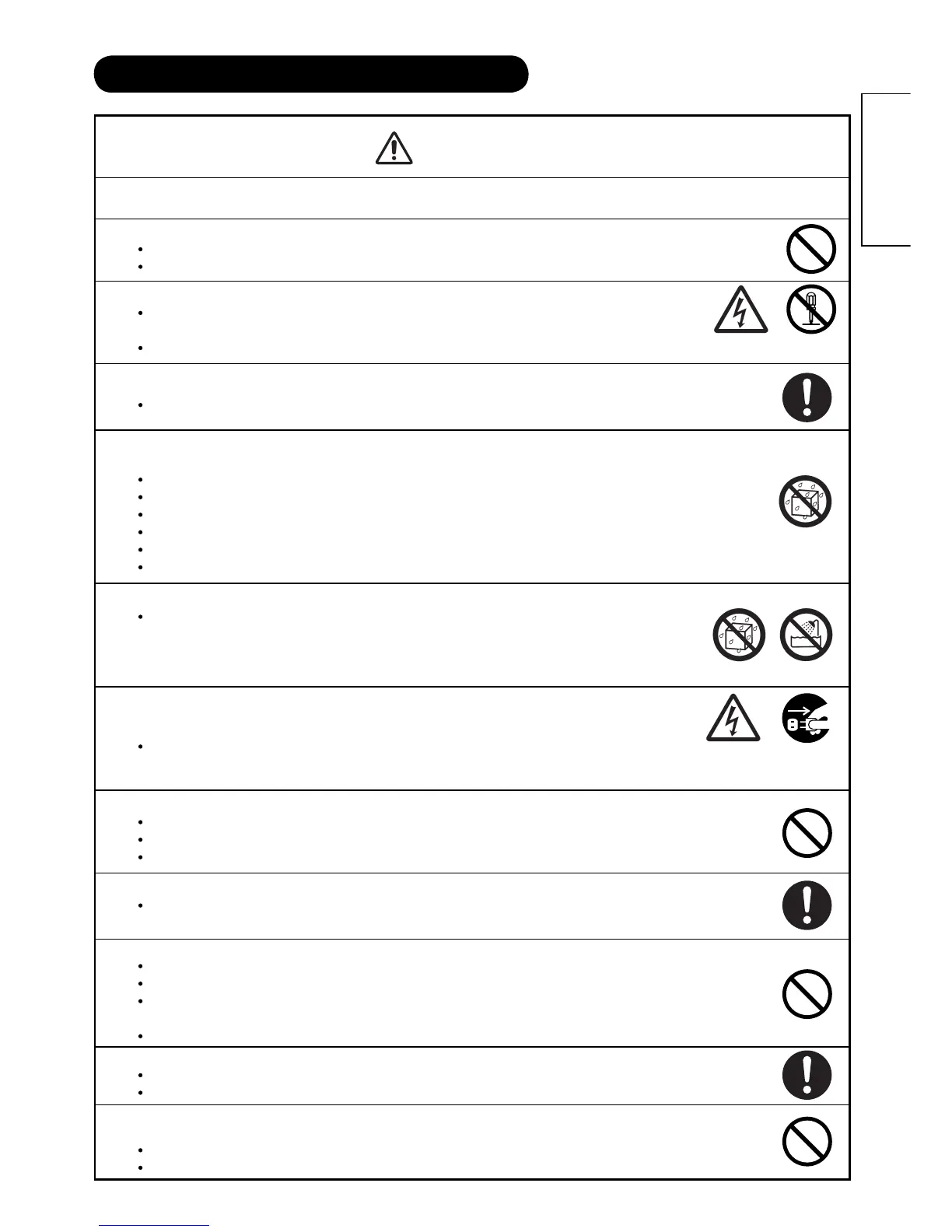 Continuing use of the product with above conditions may cause fi re or electrical shock.