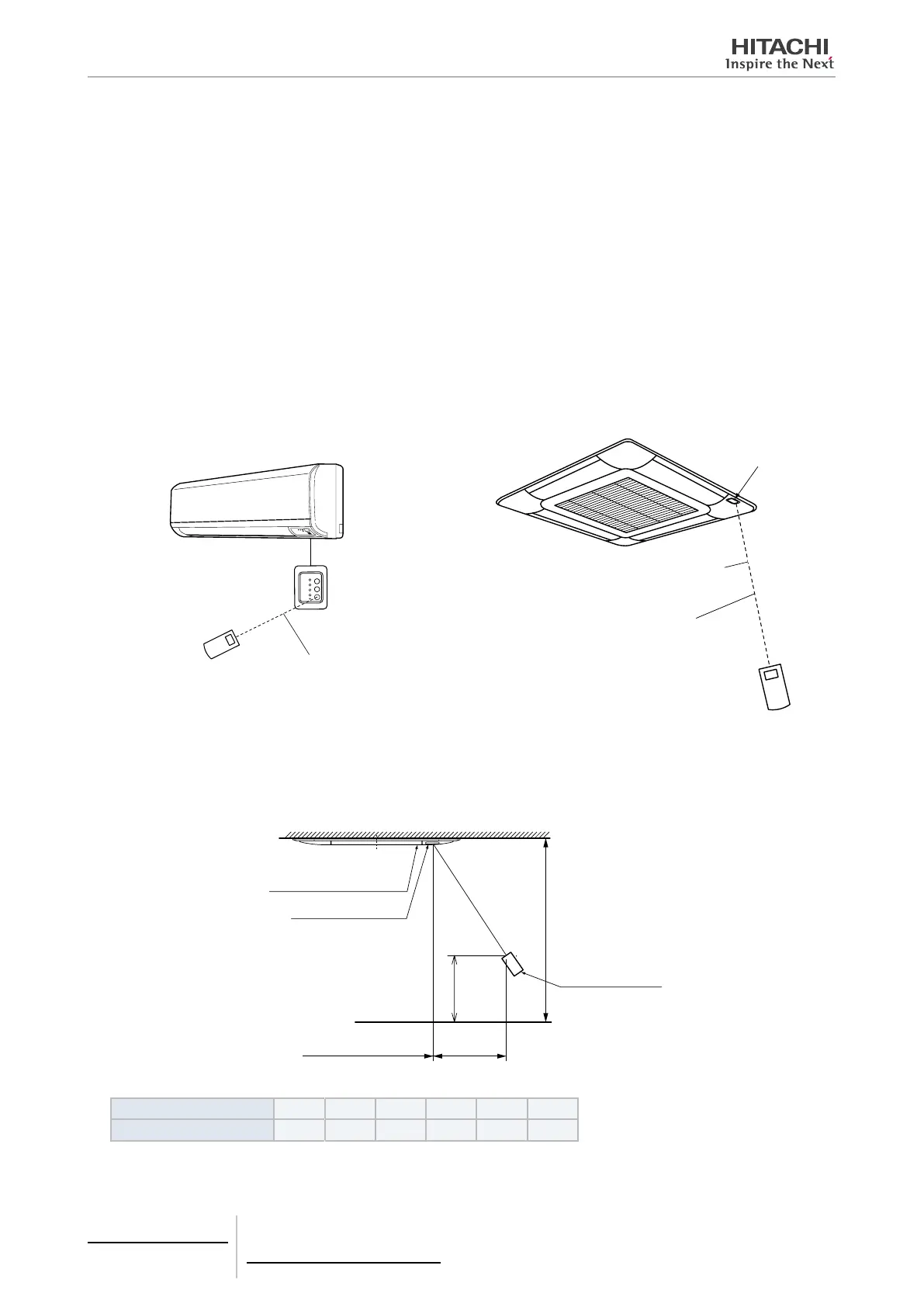 distance for transmitting depends on the ceiling height. Refer to the table below about the distance. The distance may