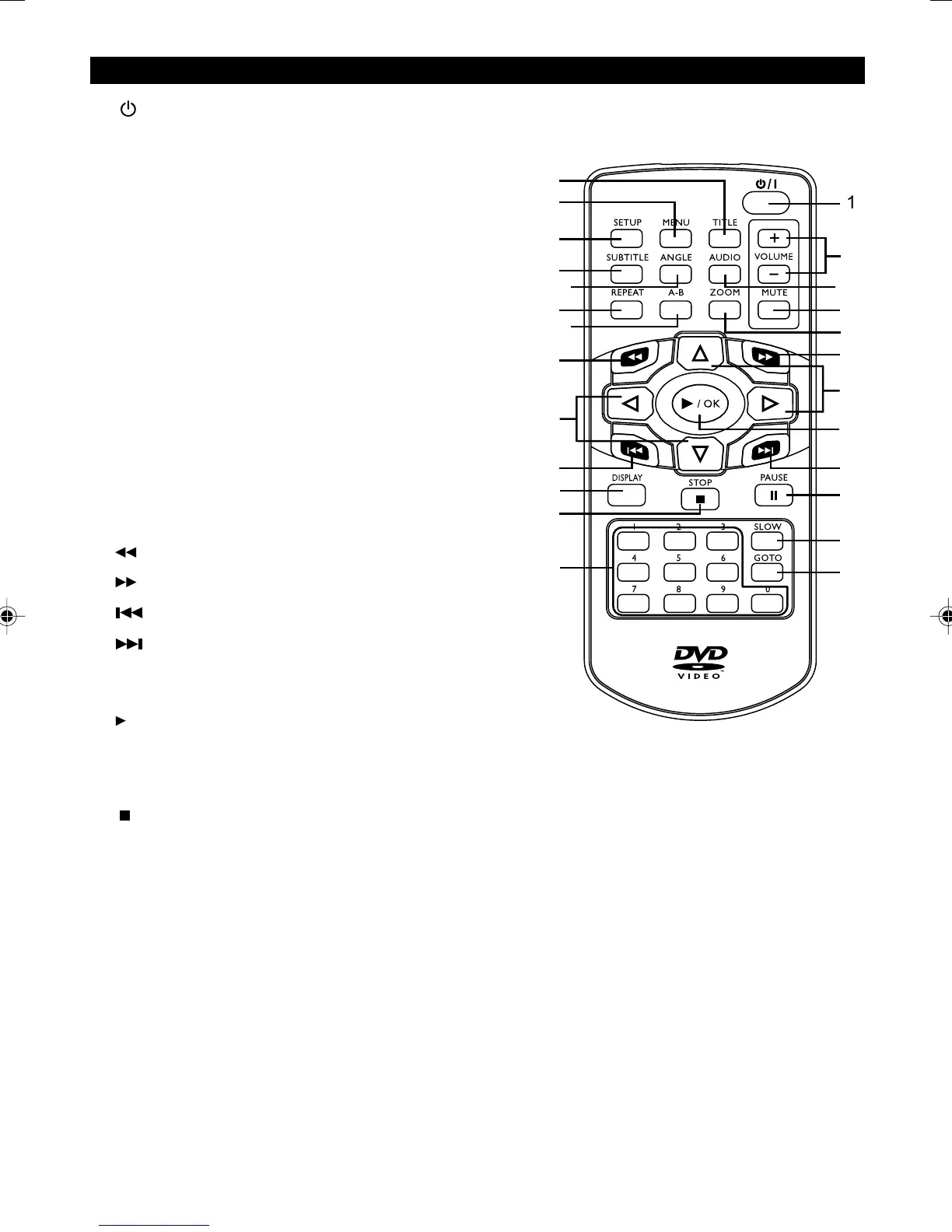 1. Power – Turns the DVD player ON or OFF.