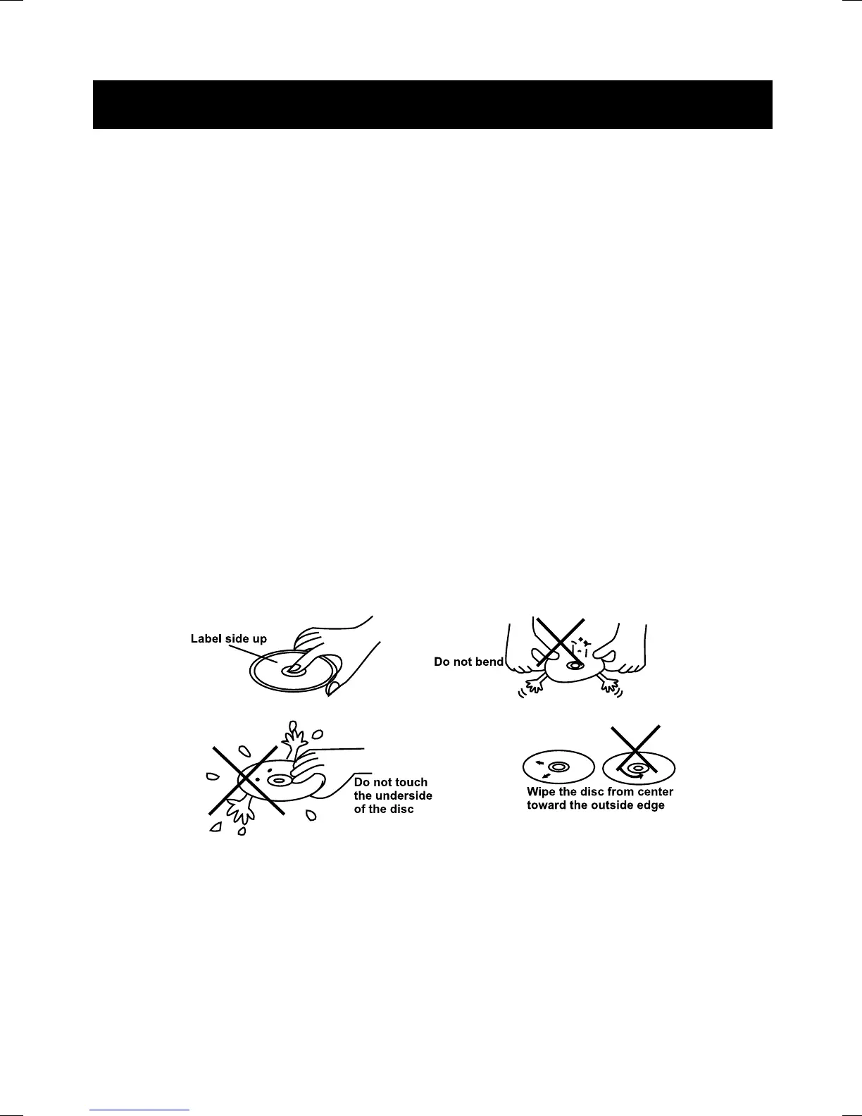 Never use solvents such as benzine, thinner or conventional record cleaners as they may mar the surface of the disc.