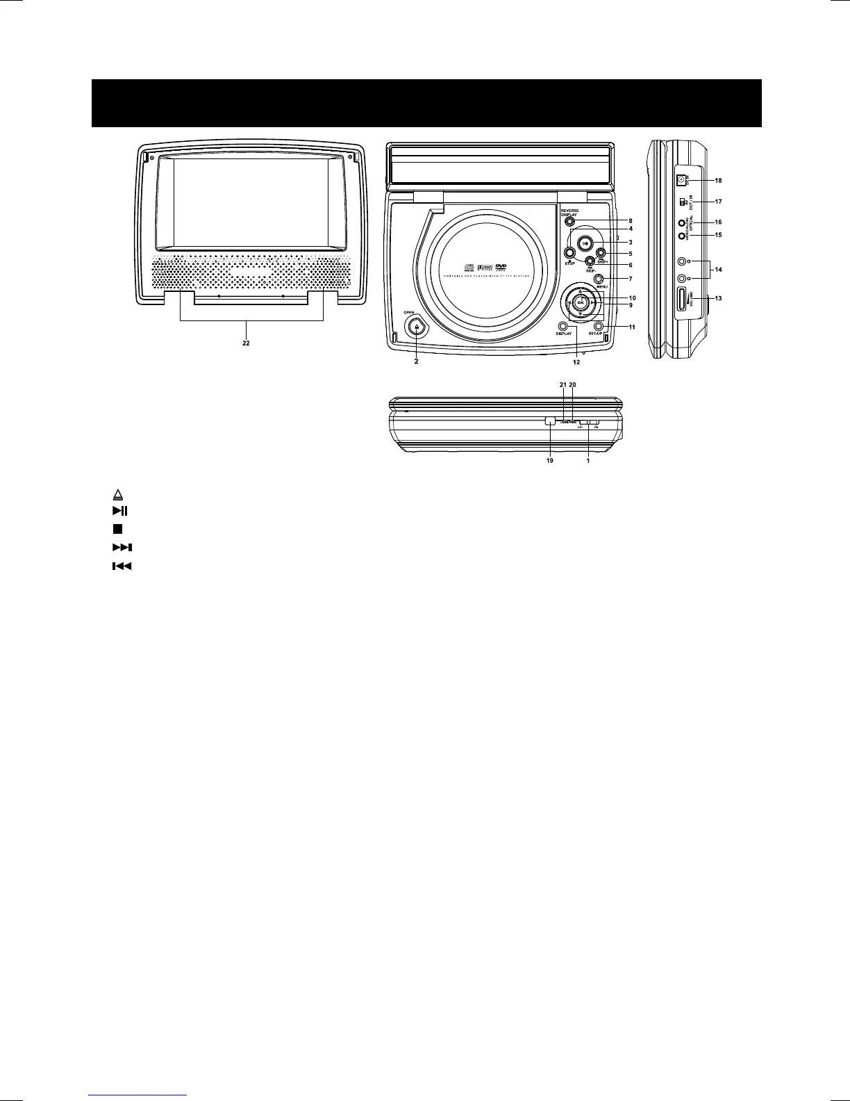 1. ON/OFF – Turn the player on or off.