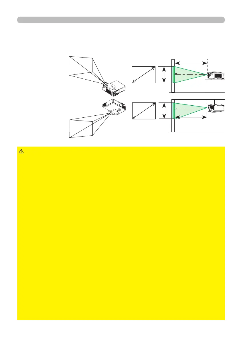 • Do not place anything containing liquid near the projector.