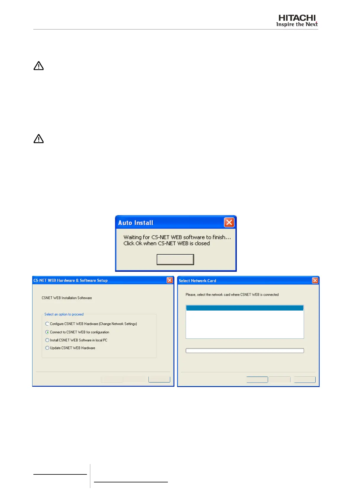 We recommend that you do not congure the software without conguring the CSNET WEB interface rst.