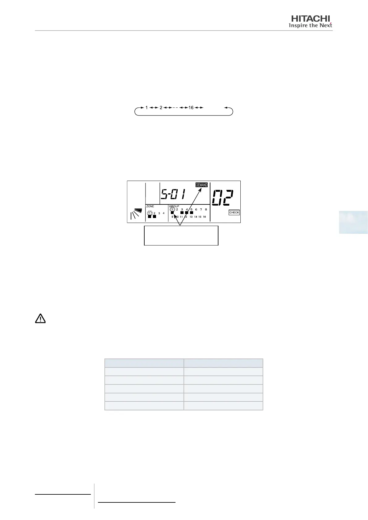 In the case where there is one or more group with demand setting in the zone, the “” indication of zone turns ON.