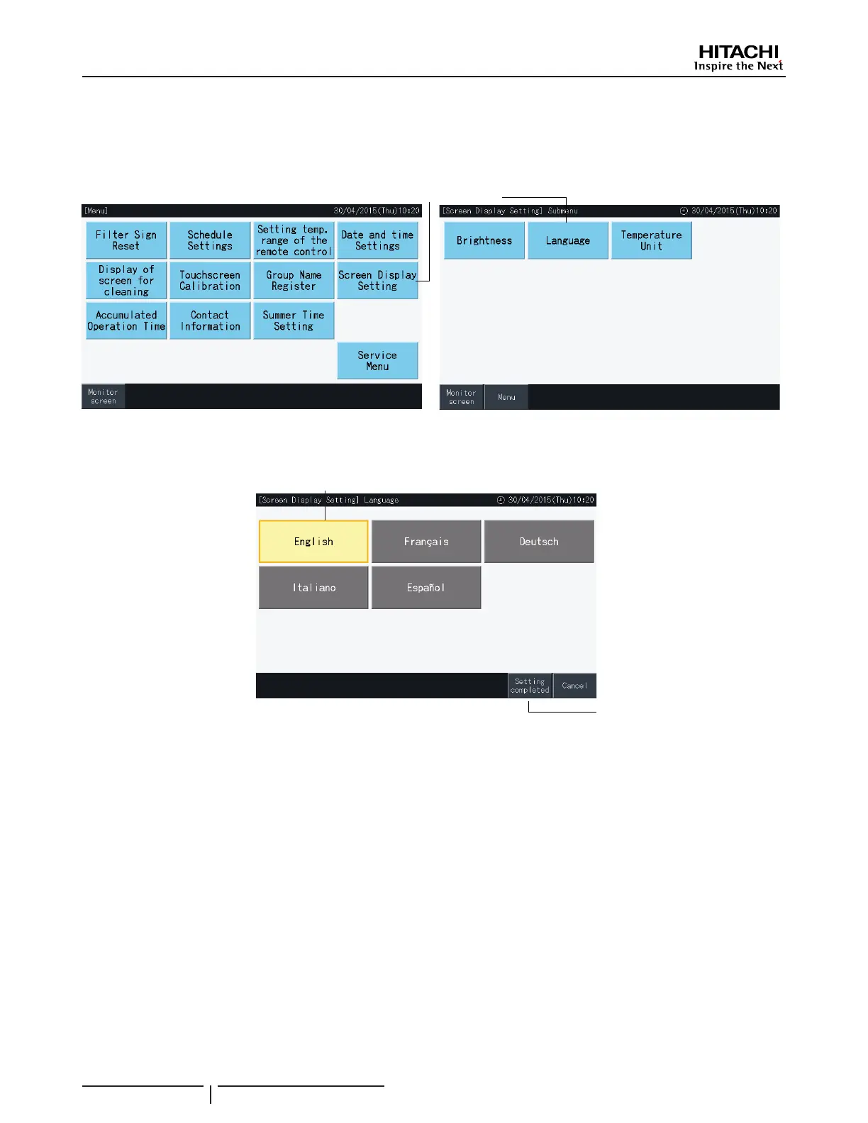 4 Tap “Setting completed” to return to the “Screen Display Setting” screen.