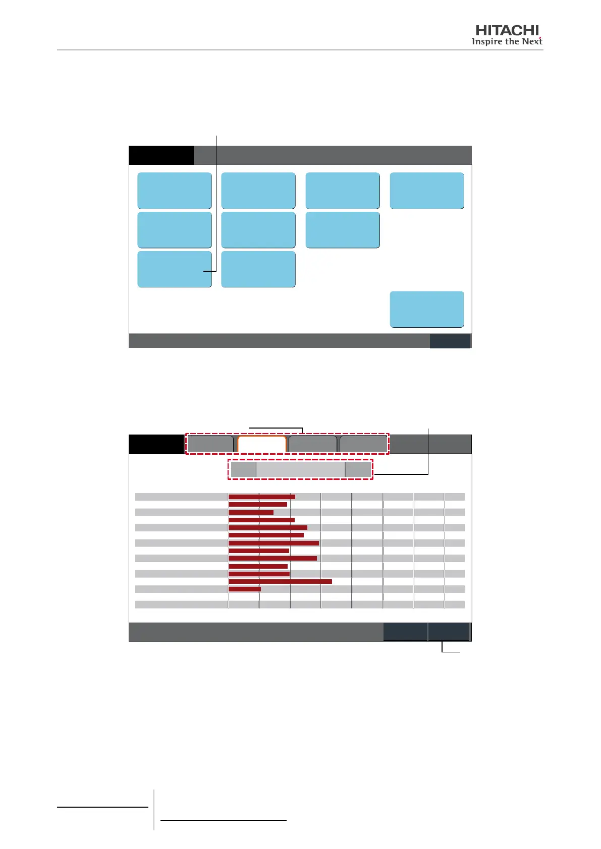 3 Tap “<” or “>” and select the target month. The operation time for the groups in the selected block are indicated ac-