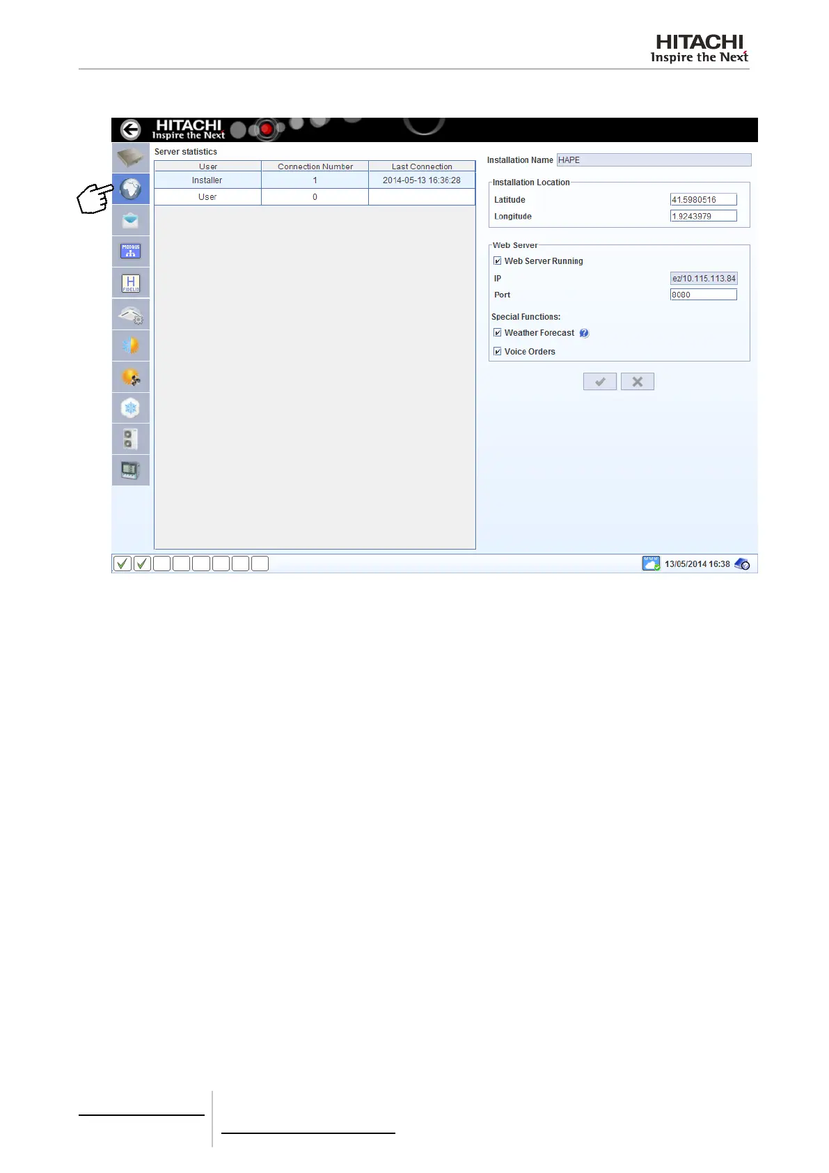 • Installation Location is used by web server functions. The location indicates where in the world is the Hitachi air