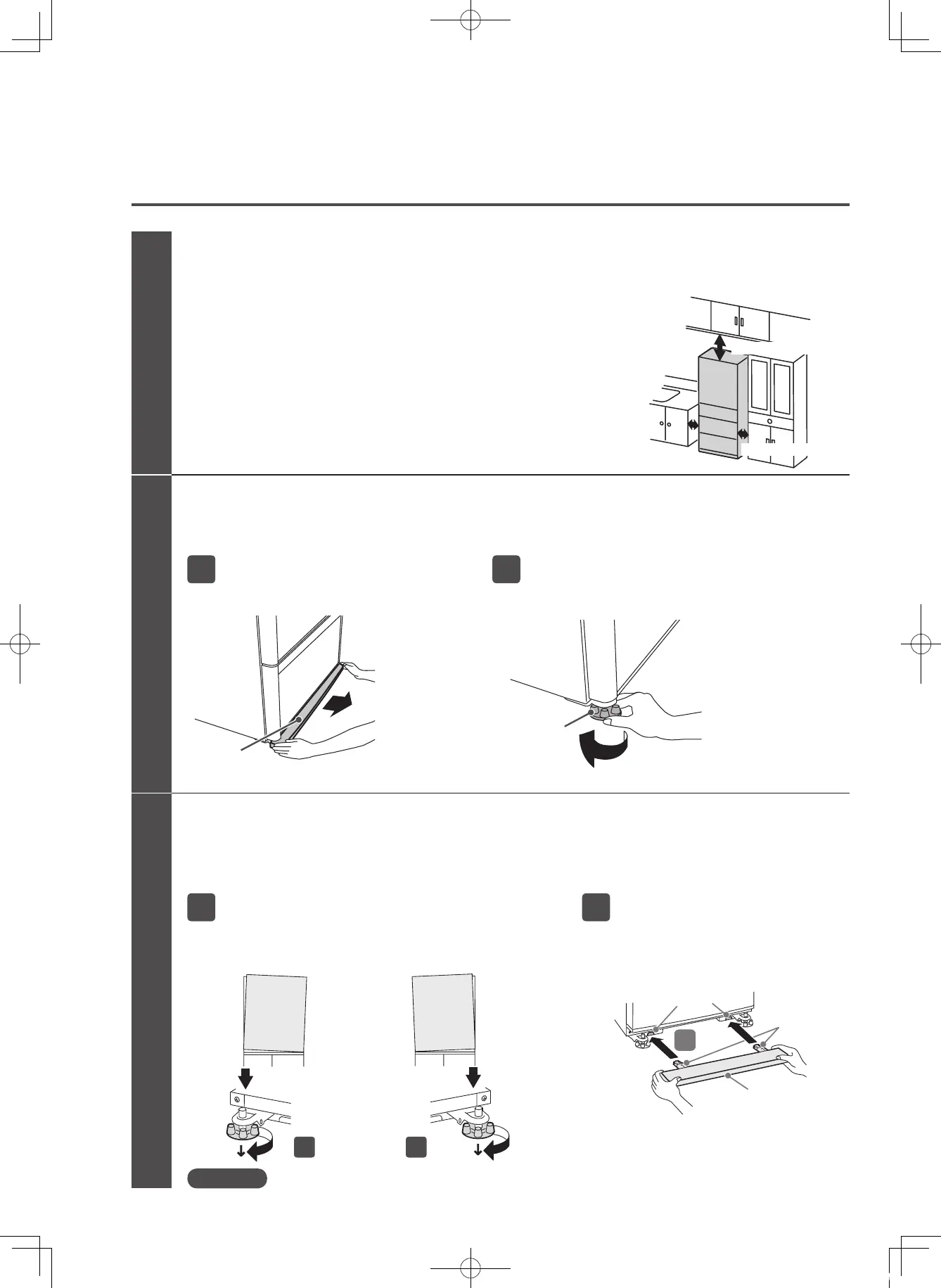 旋轉調整腳,直到冷藏庫腳降至地板時,