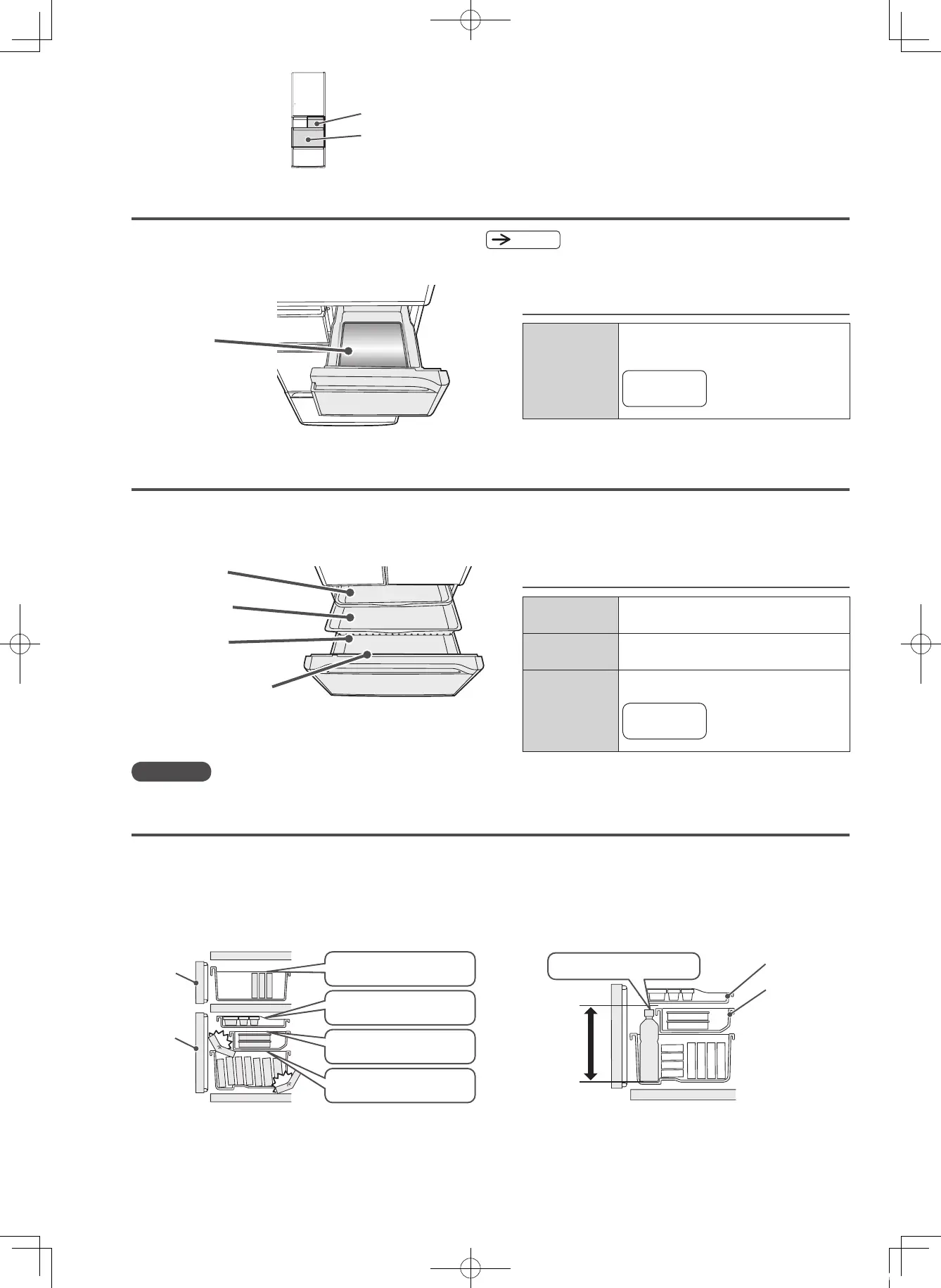 請勿讓上部的上層滑動盒或是中層滑動盒的底部接觸到其他食物。
