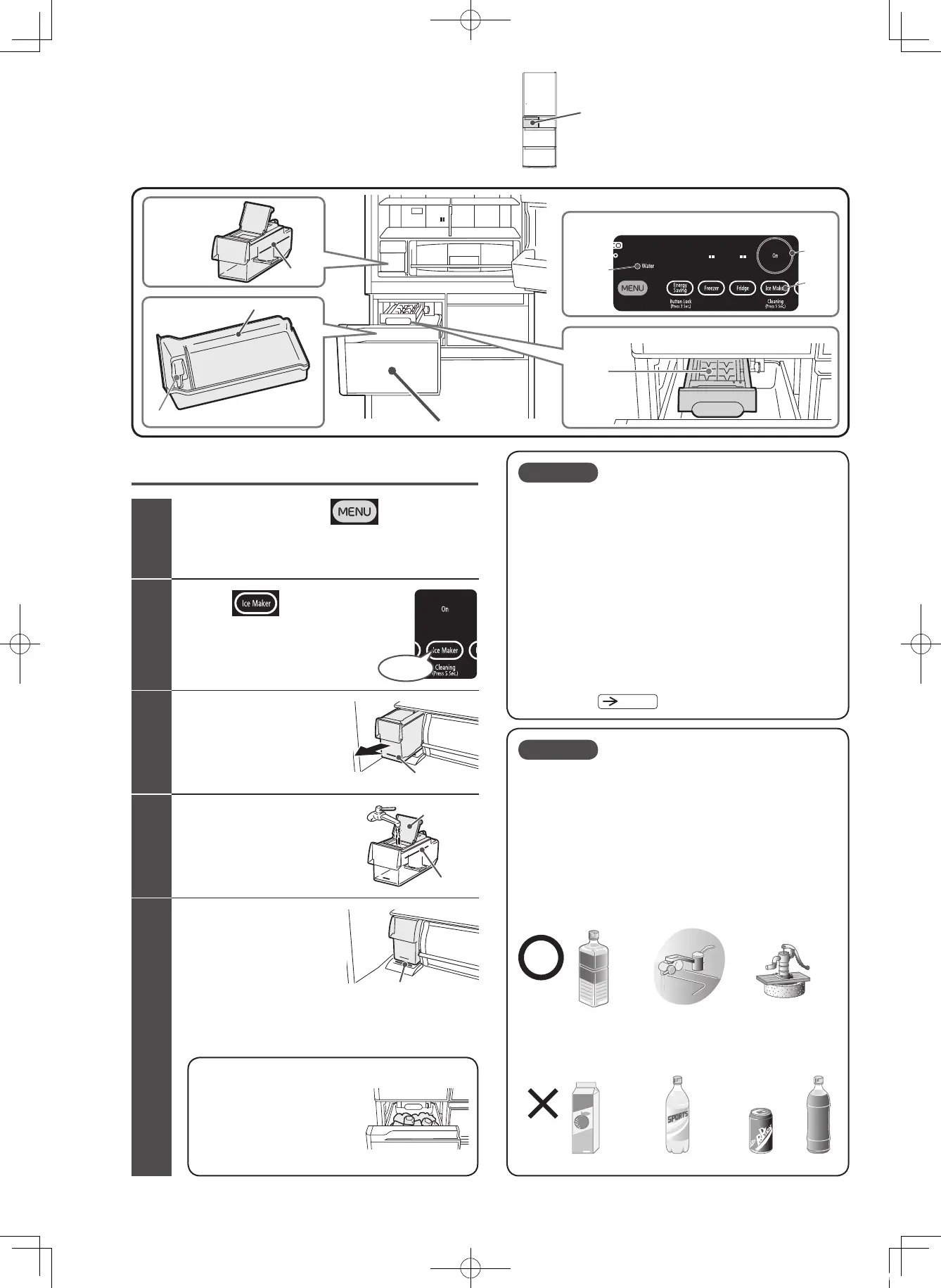 ●製冰用水根據貴國的飲用水標準而定。