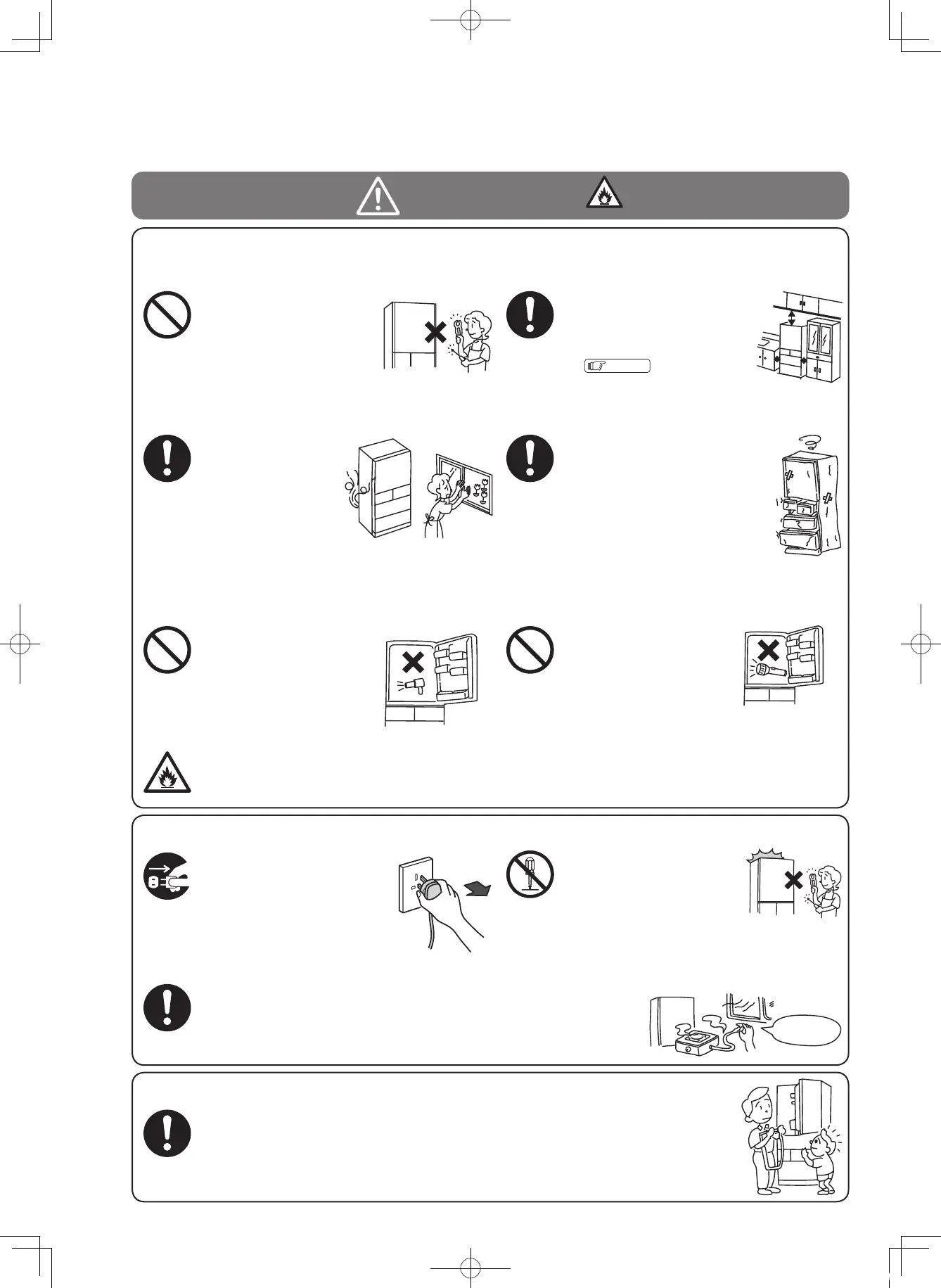 ● In the event of gas leak, do not touch the refrigera