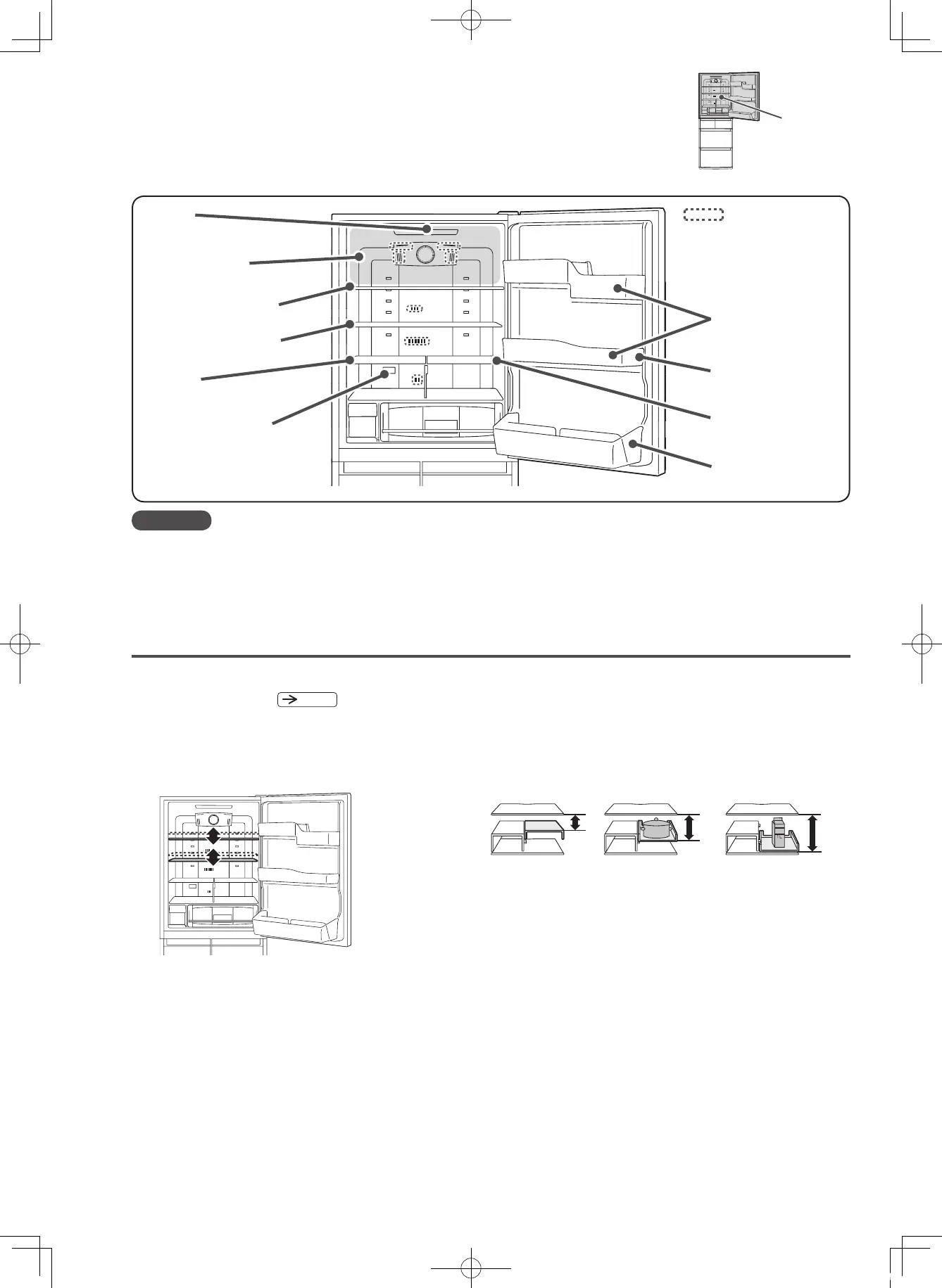 ● Store hot foods in the Quick Cooling corner or on the Height adjustable shelf. If it is placed near the temperature sensor, the