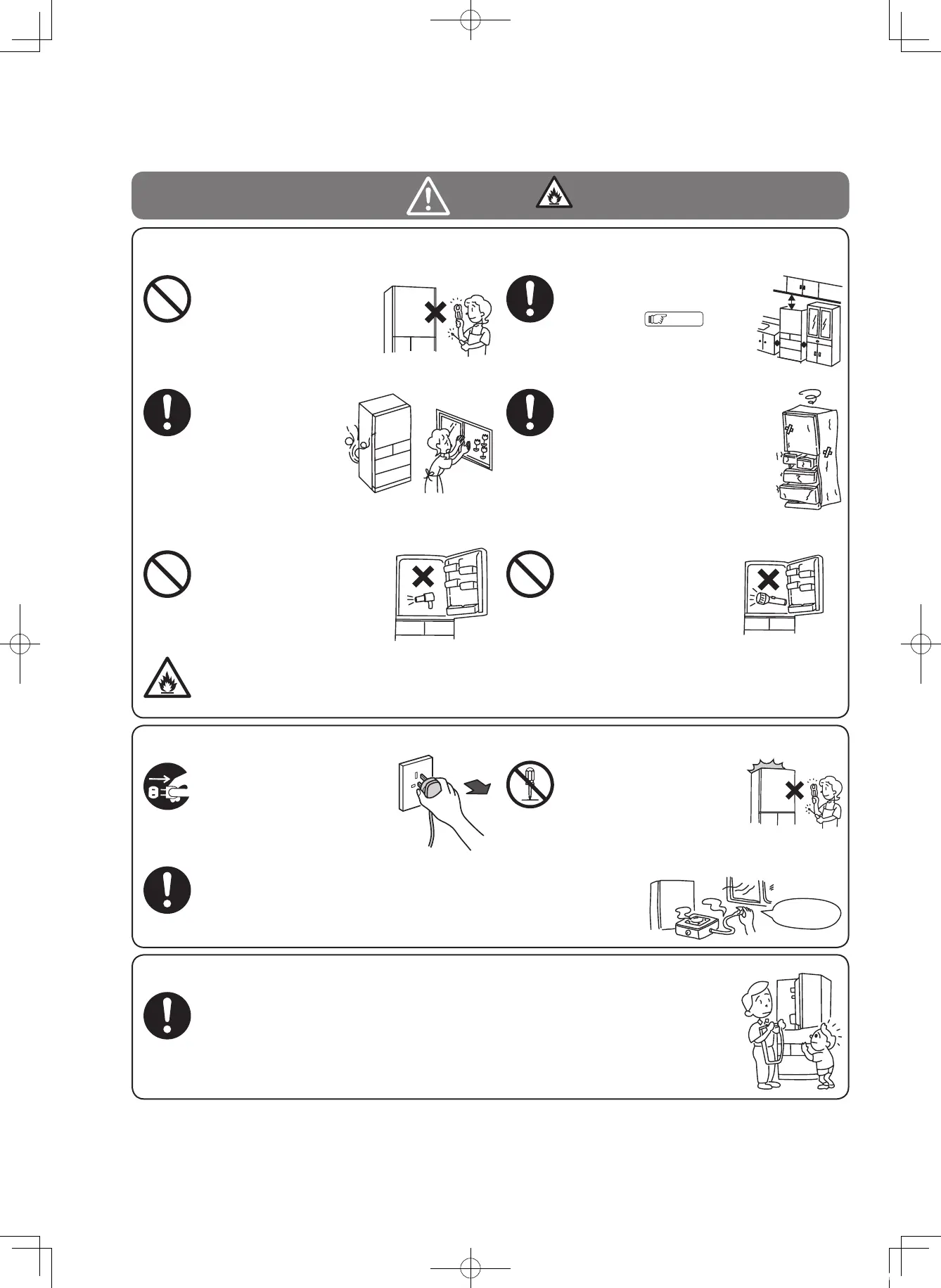 可燃性氣體外漏時,勿接觸冰箱,請立即開啟窗戶進行換氣。