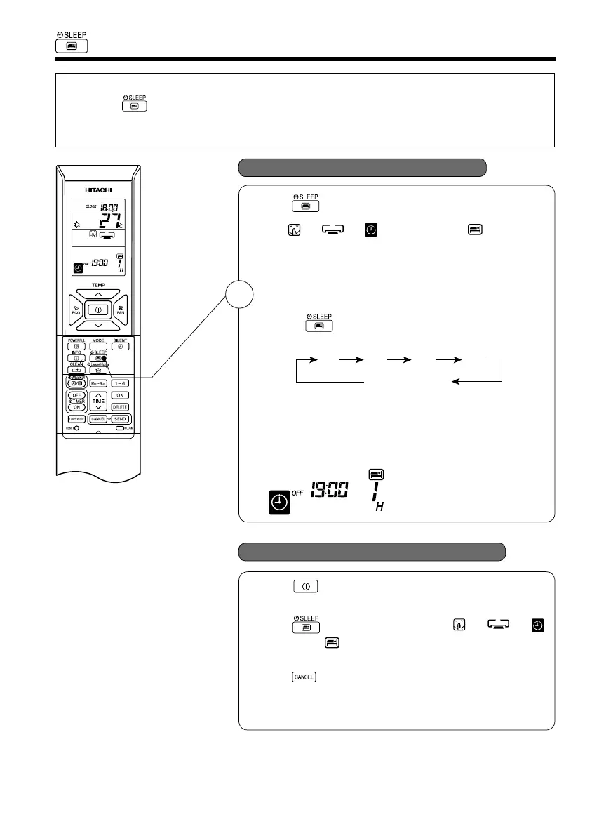 By pressing (SLEEP) button during AUTO, HEATING, DEHUMIDIFYING, COOLING or FAN operation,
