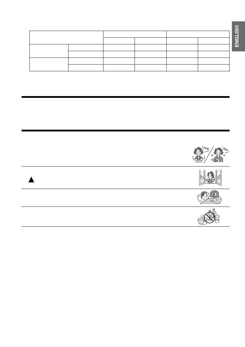 ● Excessive cooling or heating is not recommended for health reasons. High electricity