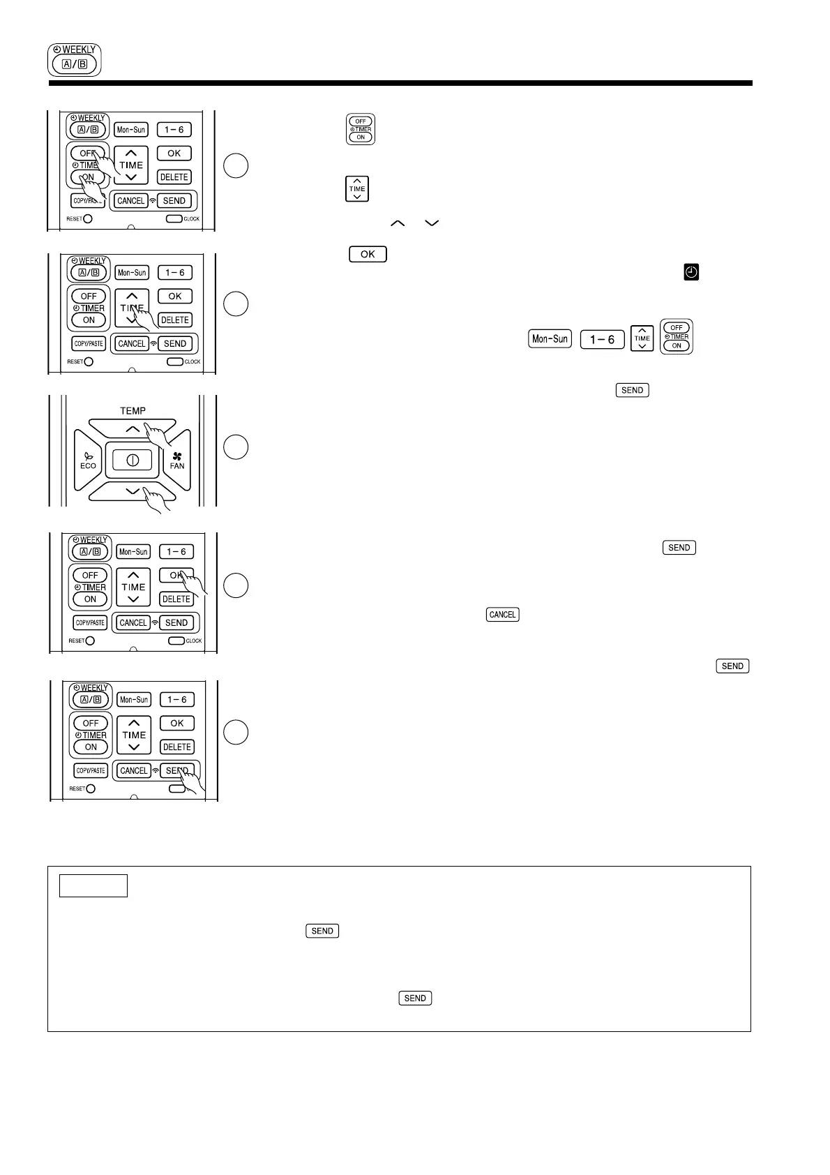 can be at random. When pressing (SEND) button, the set ON TIMER or OFF TIMER for each