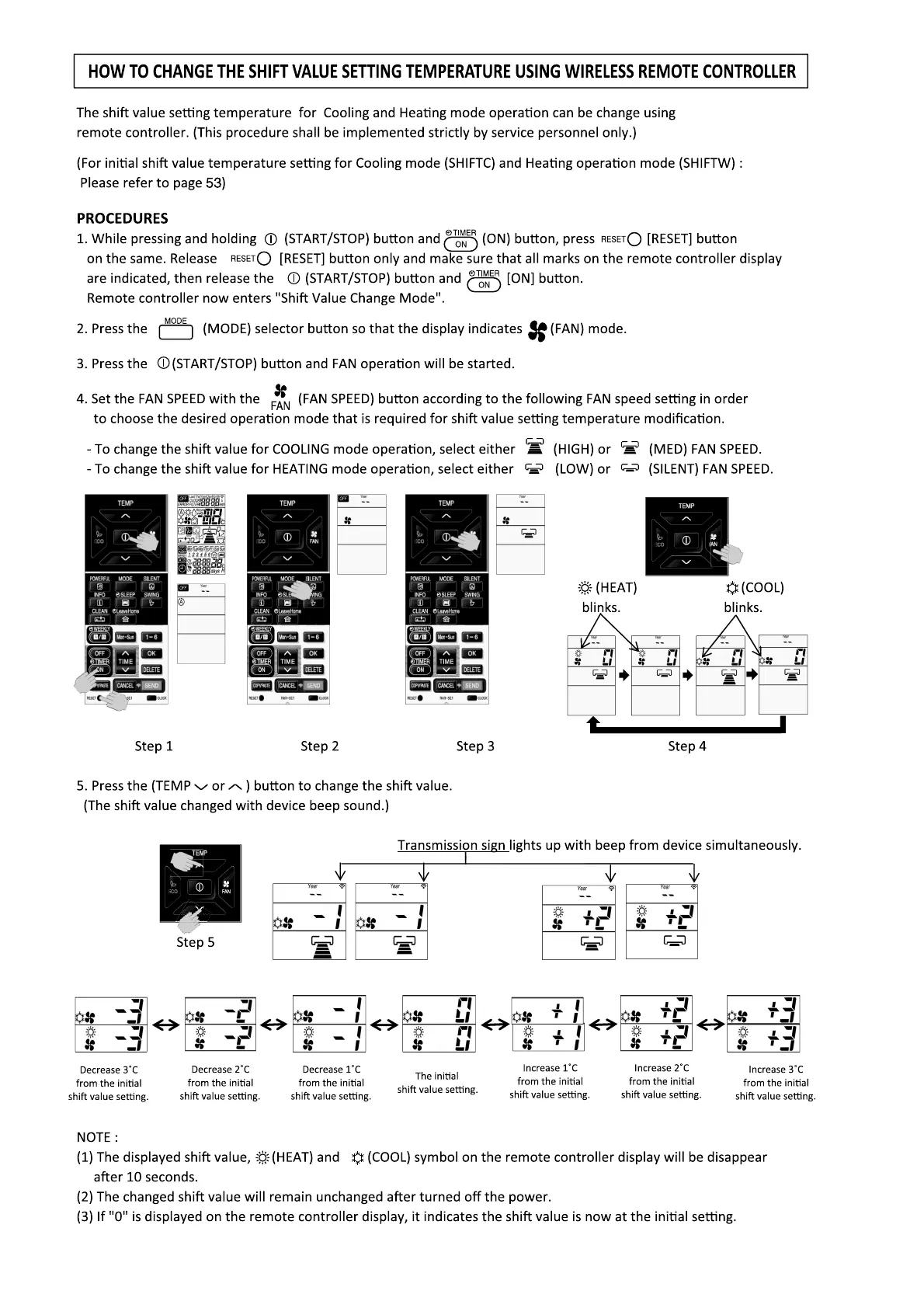 Hitachi RAM-36NP2A - How to Change the Shift Value Setting Temperature Using Wireless Remote Controller