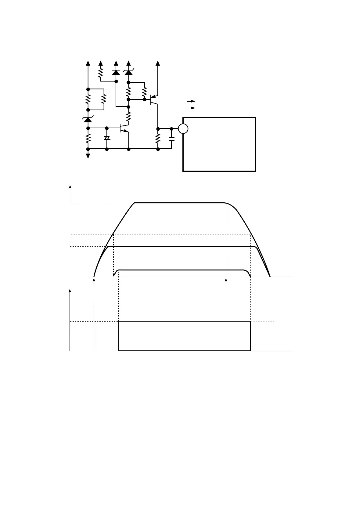 35V line reaches about 24V, ZD201 is turned ON, the potential of Q201’s base rises and Q201 is turned ON. At this time