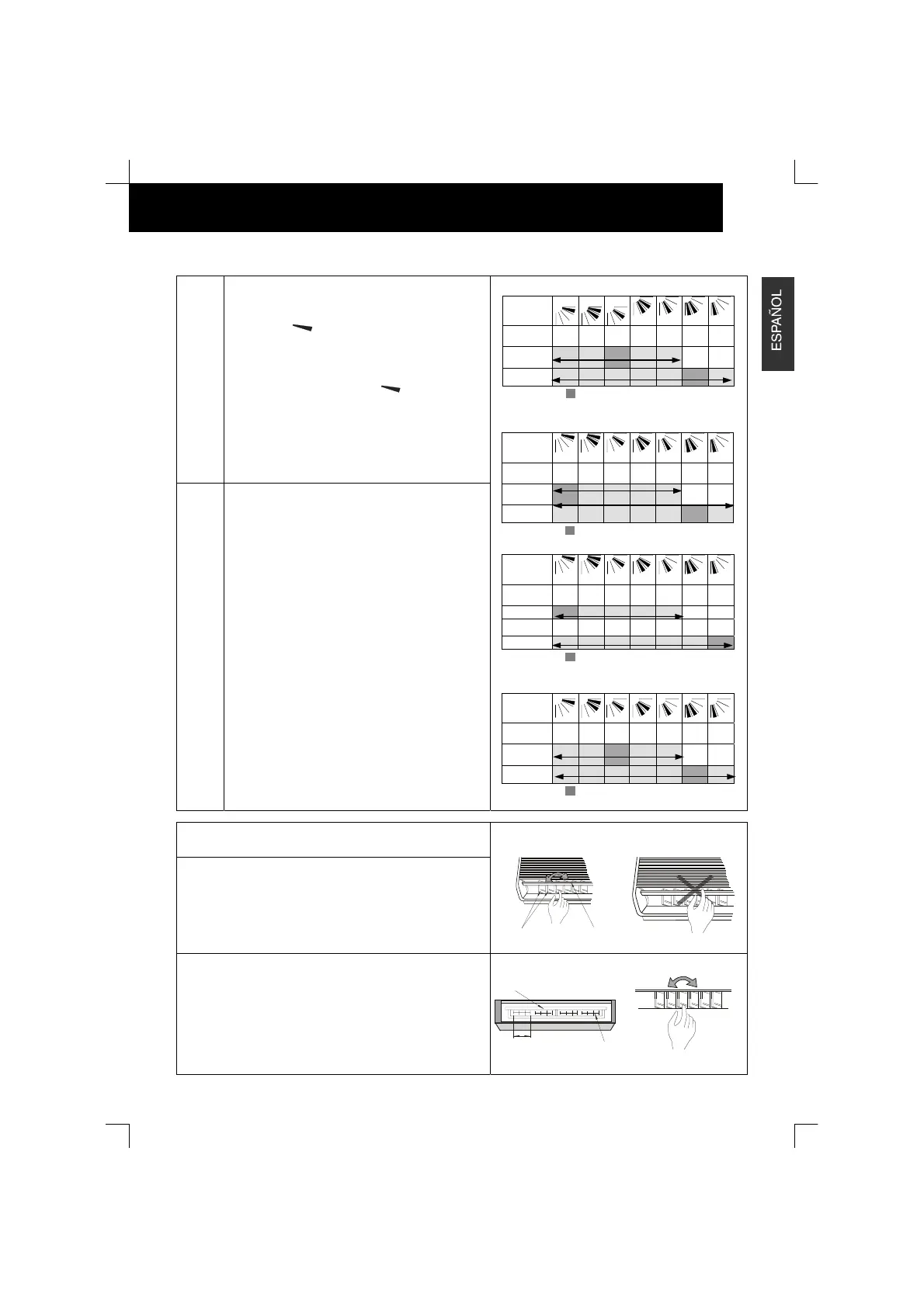 Ajuste manualmente los deflectores verticales para descargar el aire