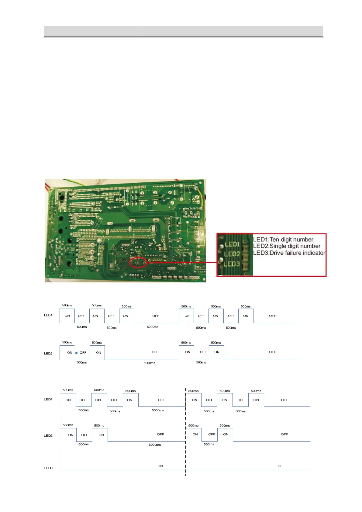 by single digit number and LED3 indicates outdoor drive control fault.