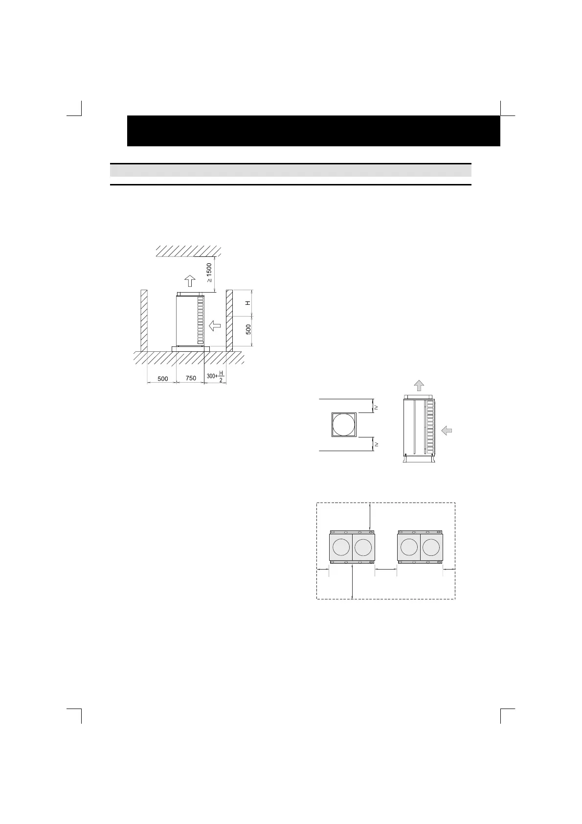 * Ajoutez la moitié de la dimension de H à 300 mm pour la prise d'air de