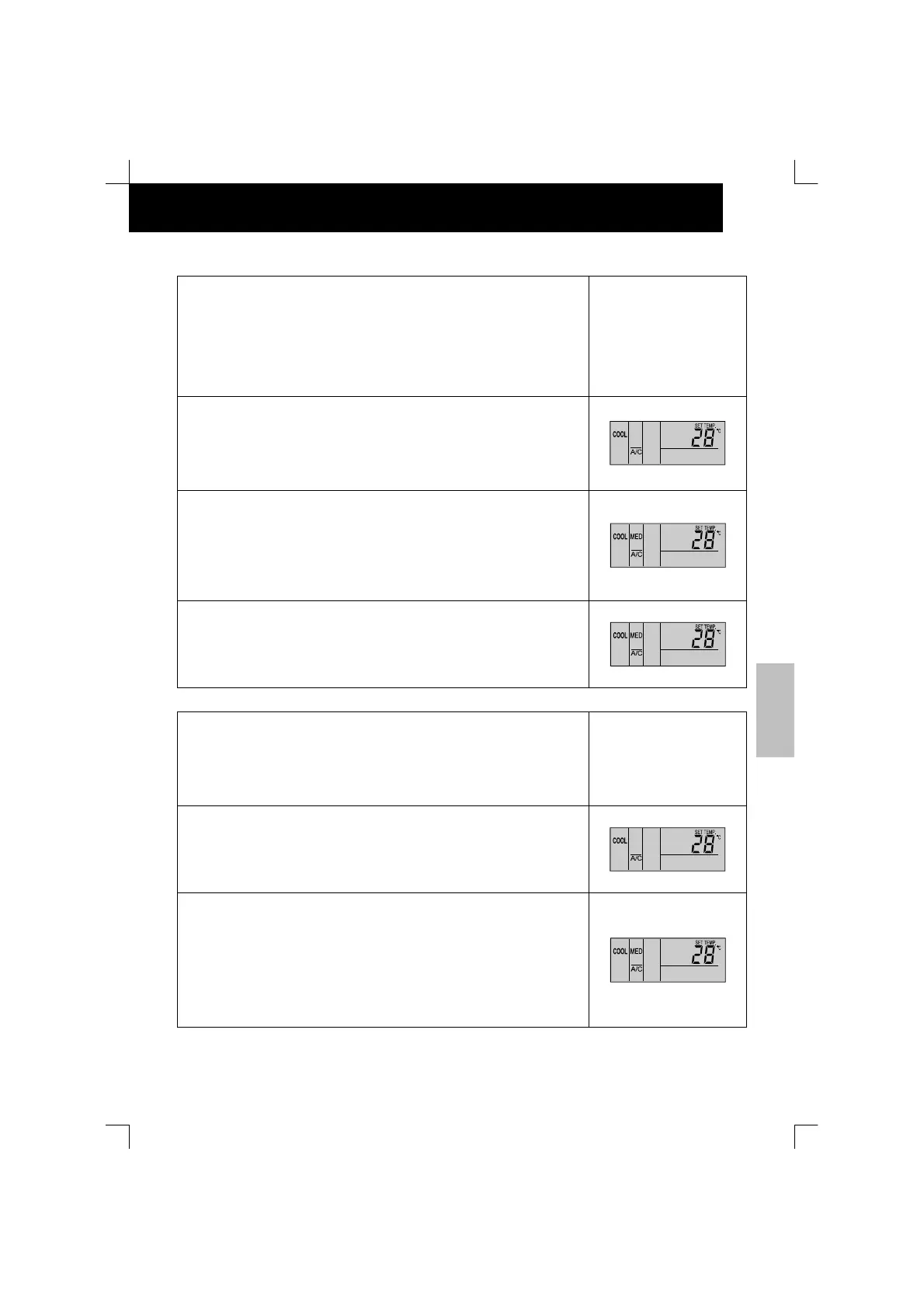 A temperatura desce 1 °C premindo o botão “=” (Mín. 19 °C em caso de modo COOL,