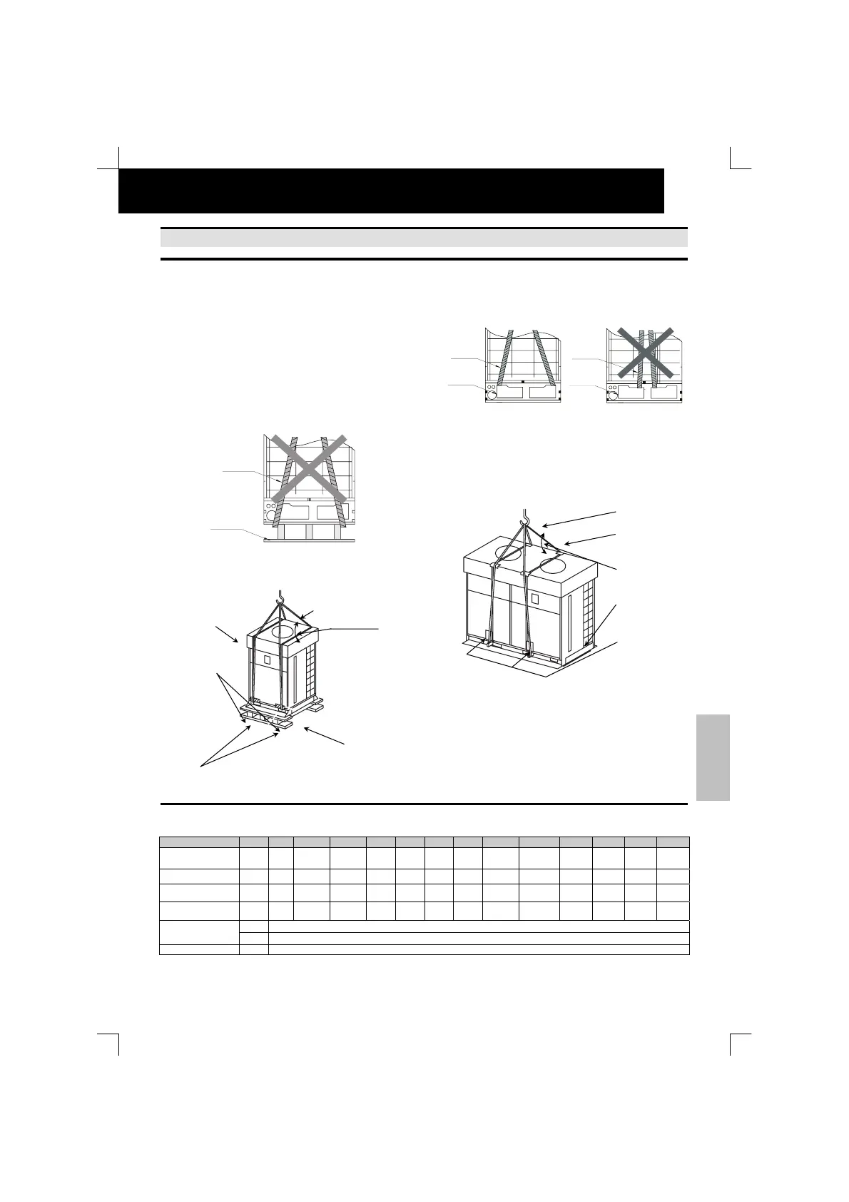 Hæng den emballerede enhed op i fire (4) løftewirer.