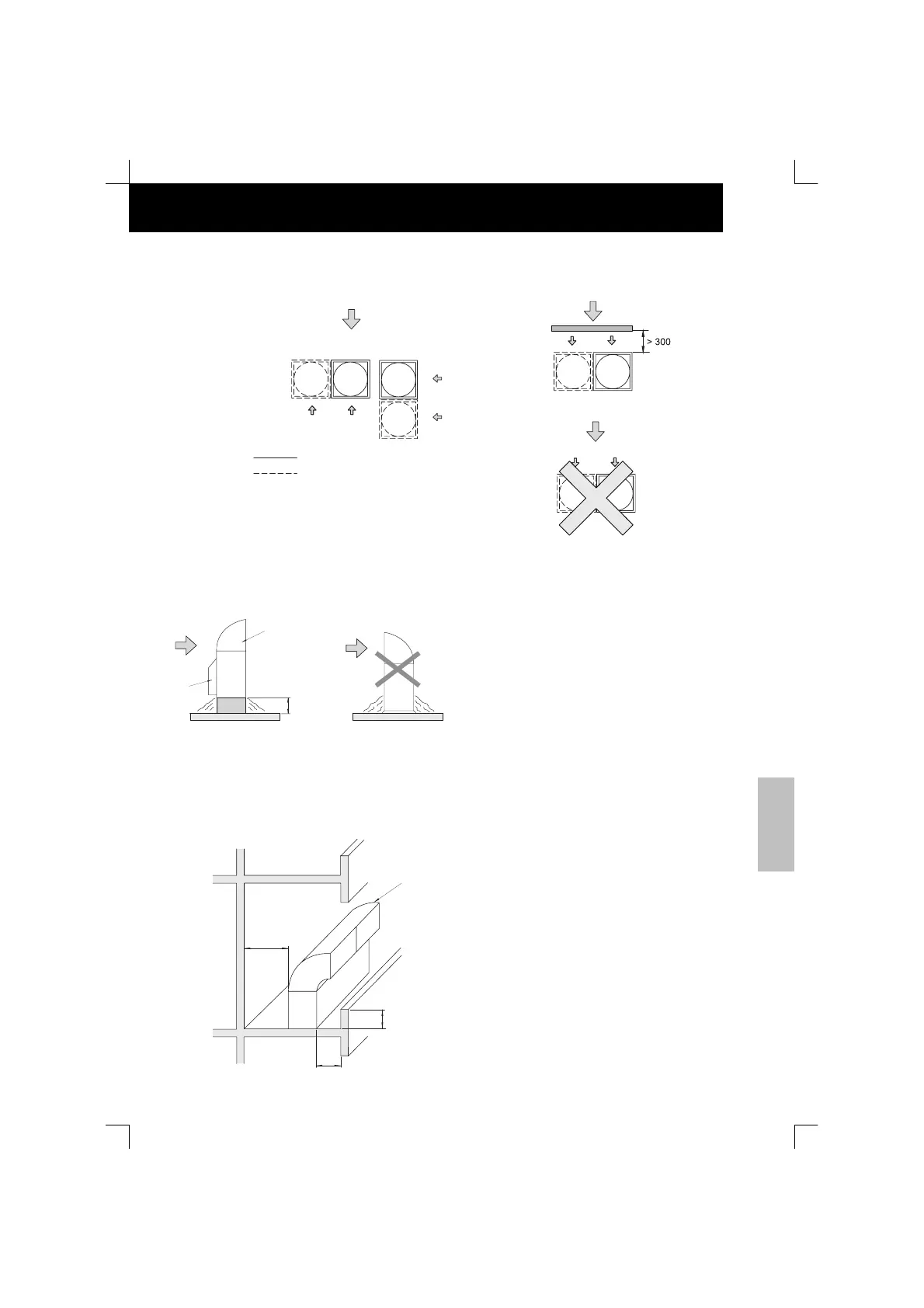 Undgå at installere enhederne således at luftindtaget (bagsiden) vender op imod den overvejende vindretning.