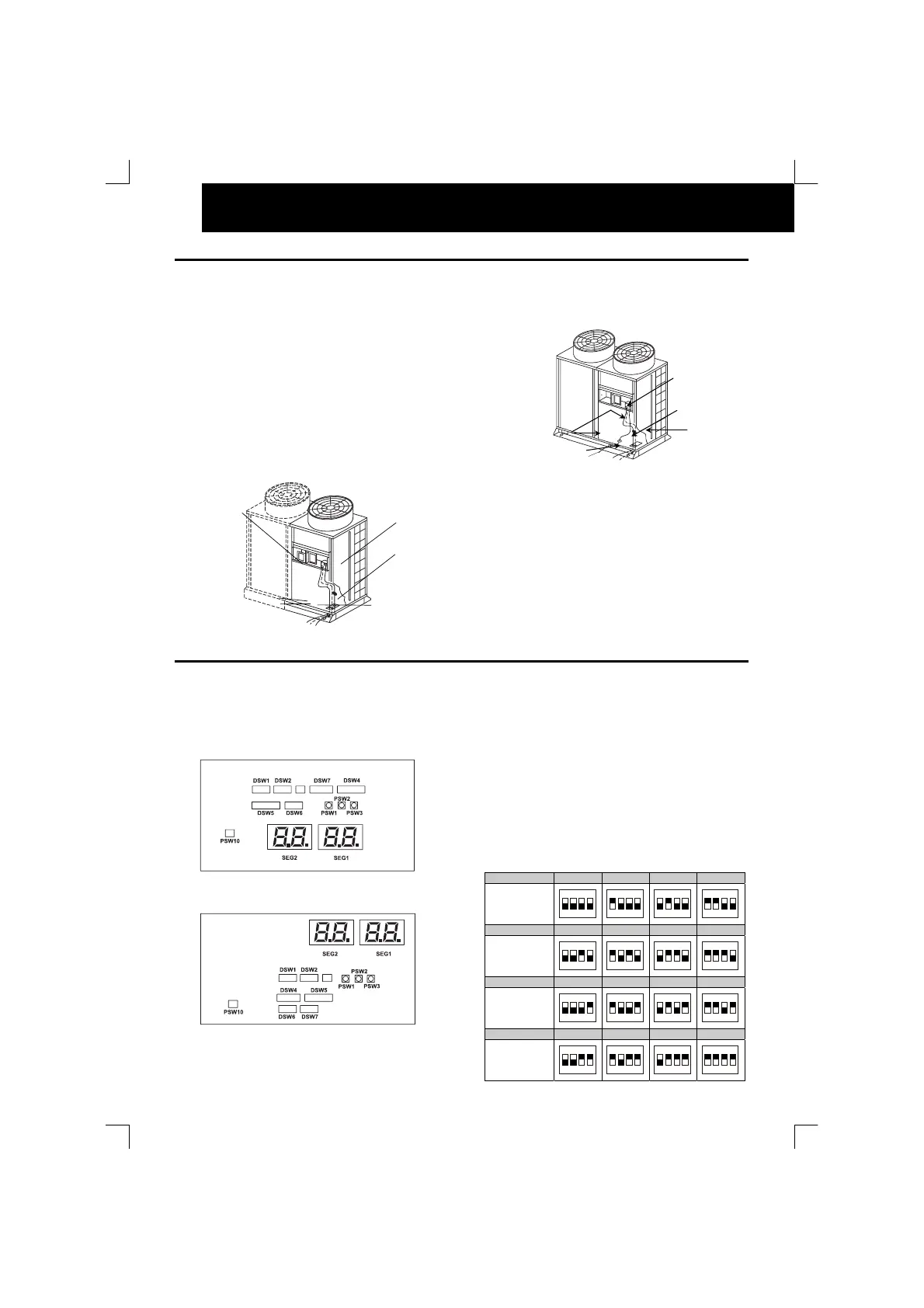 De PCB in de buitenunit wordt bestuurd met 7 types dip-