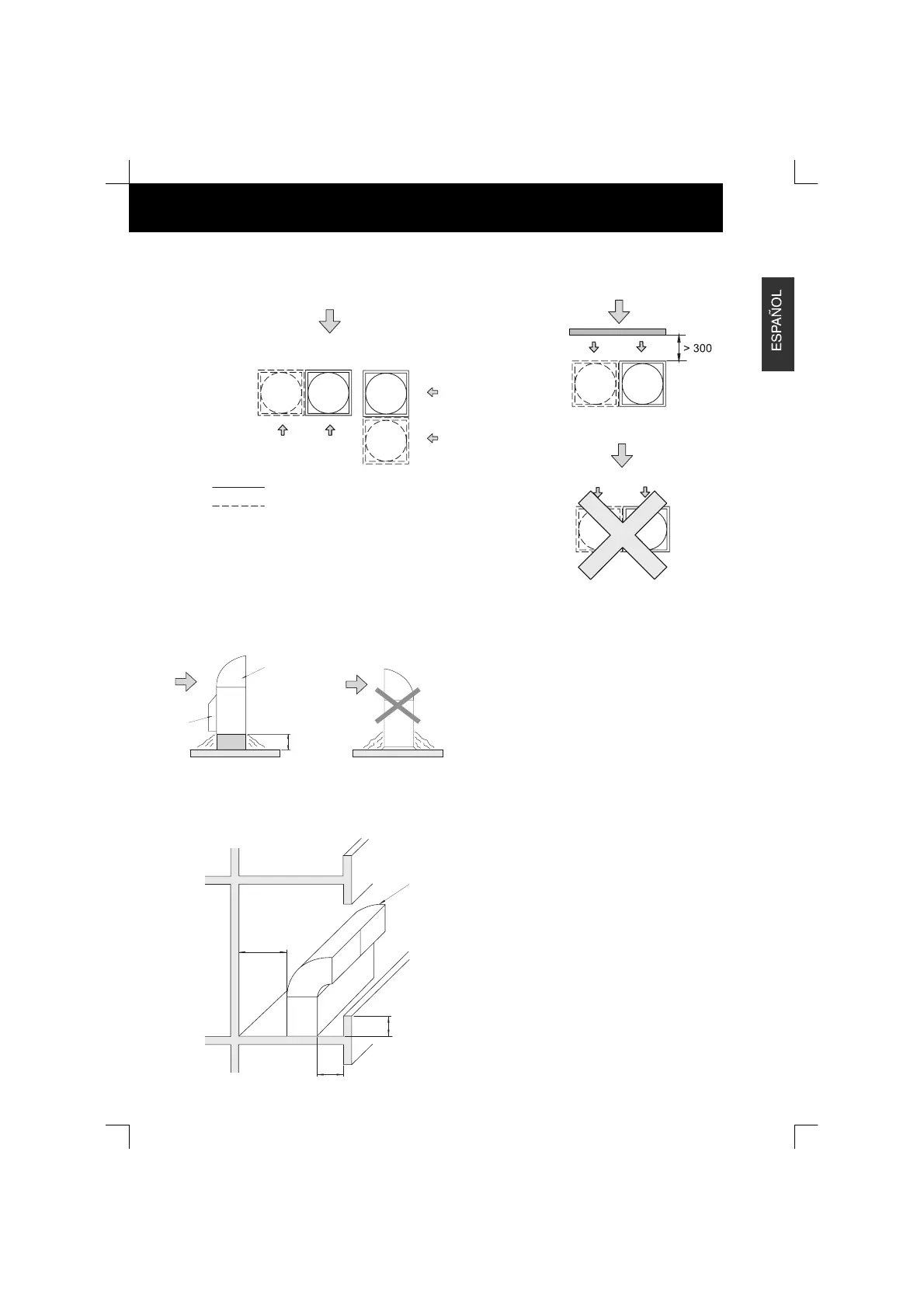 Evite realizar instalaciones en las que el lateral (posterior) de entrada del aire de la unidad esté directamente orientado hacia