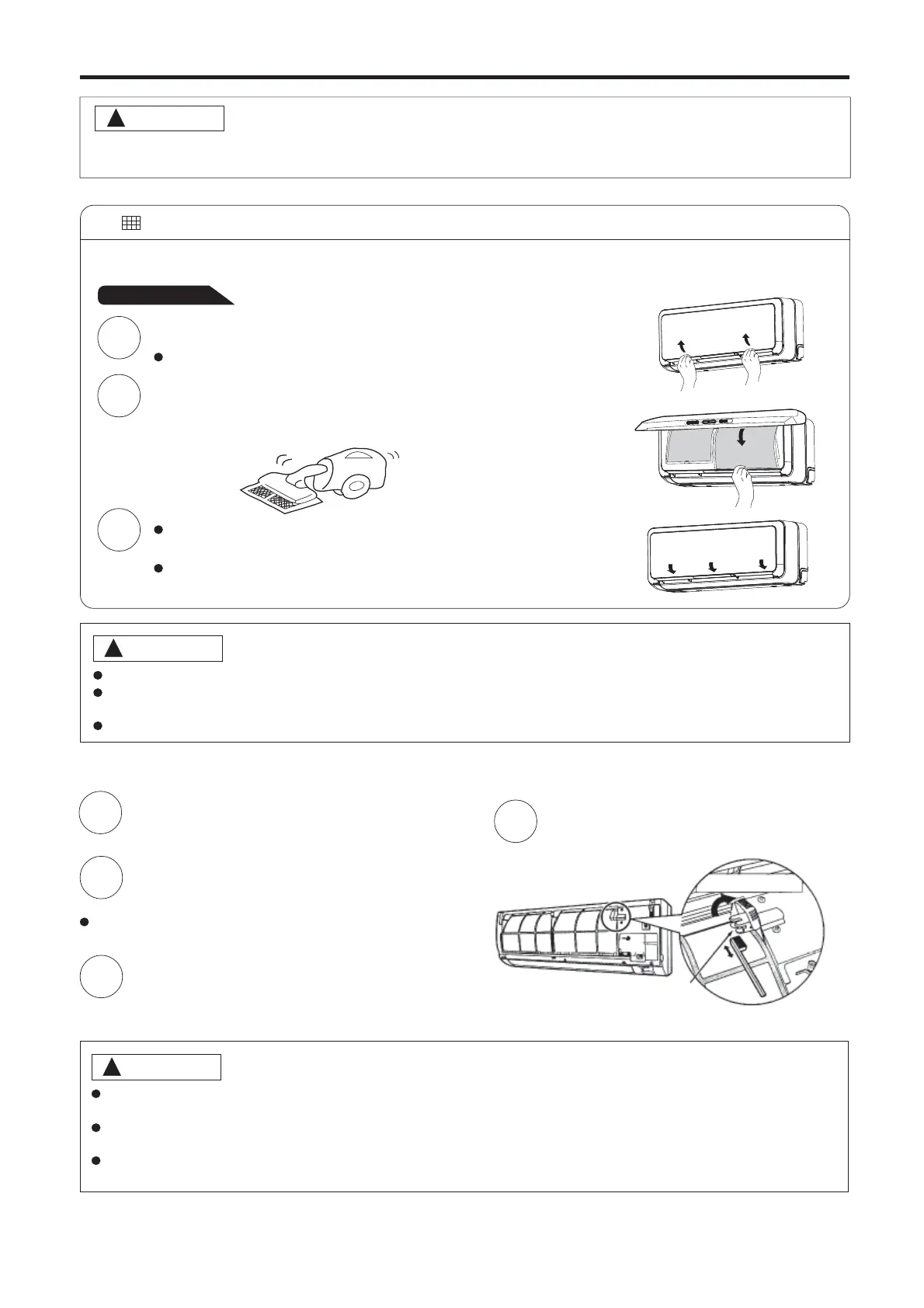 the cooling capacity will be reduced. Further, noise may occur. Be sure to clean the filter following the procedure below.