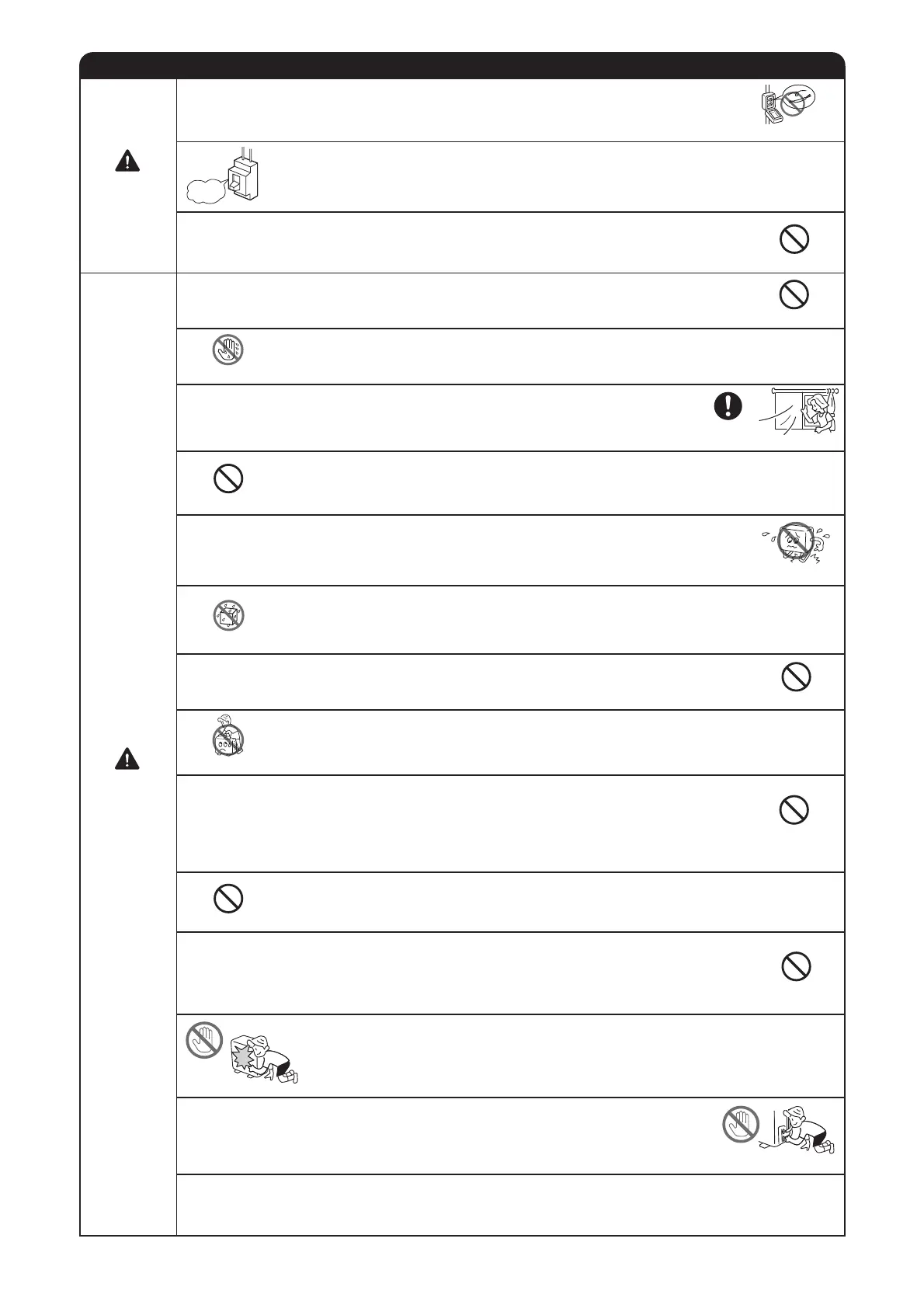 • Do not climb on the outdoor unit or put objects on it.