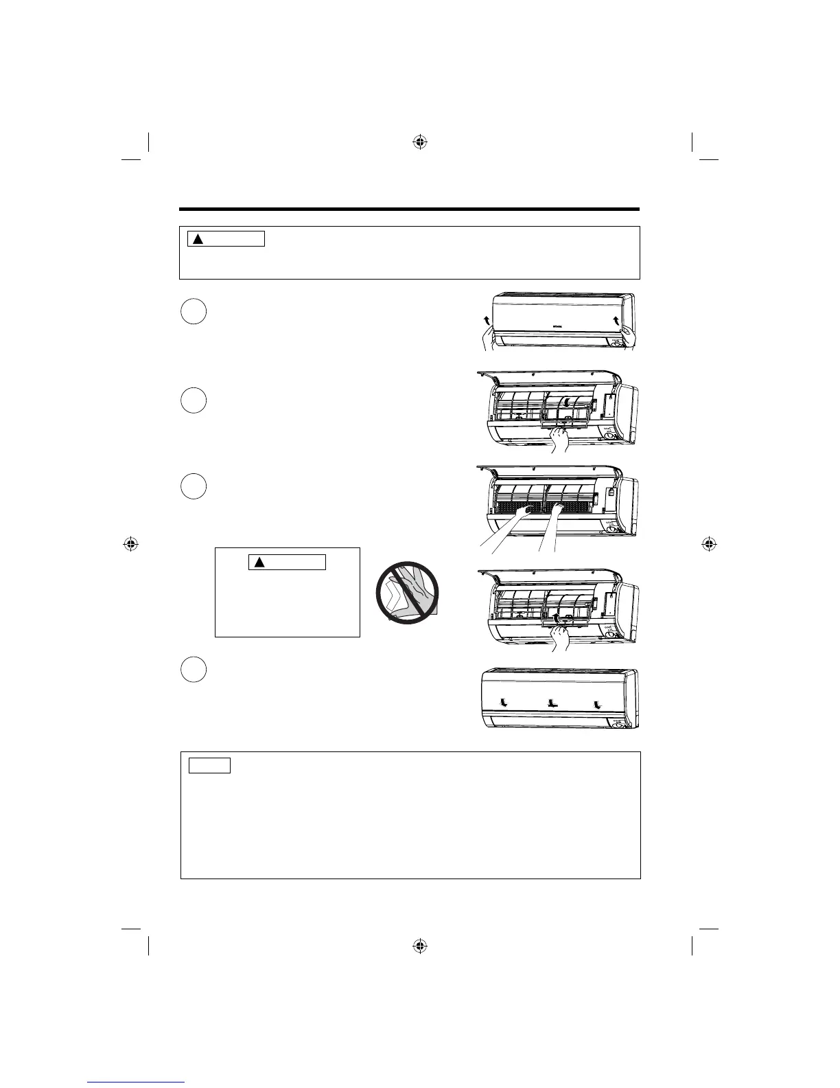 ● Do not operate the air conditioner without Pre-fi lter. Dust may enter the air conditioner and fault