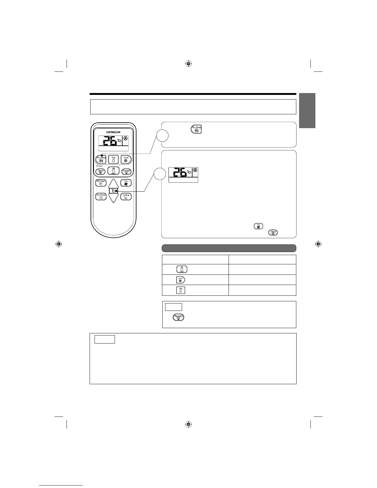 ● Air sleep operation starts with a signal received sound “beep”. (Air