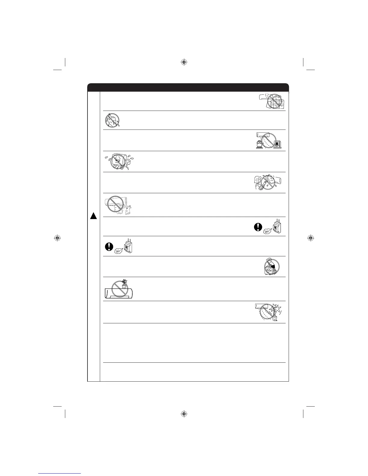 Do not climb on the outdoor unit or put objects on it.