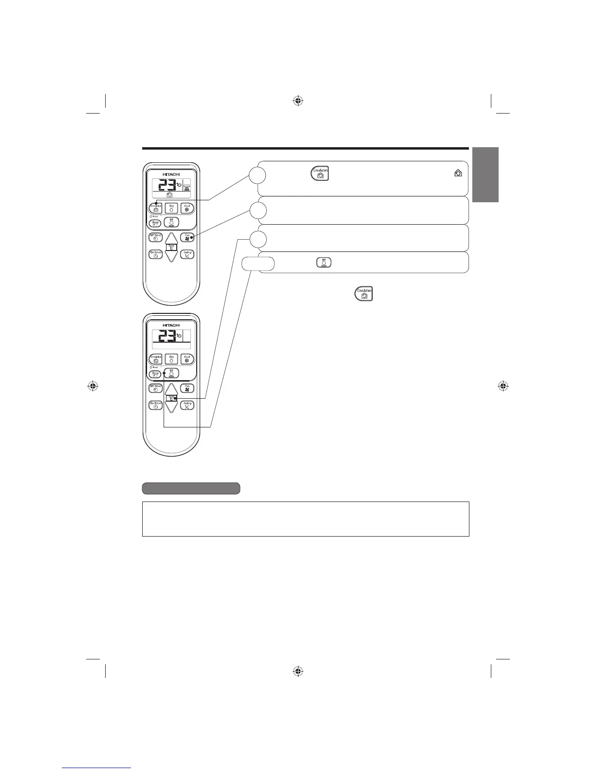 ● During circulation operation, compressor will not be running and there is no cooling operation with only