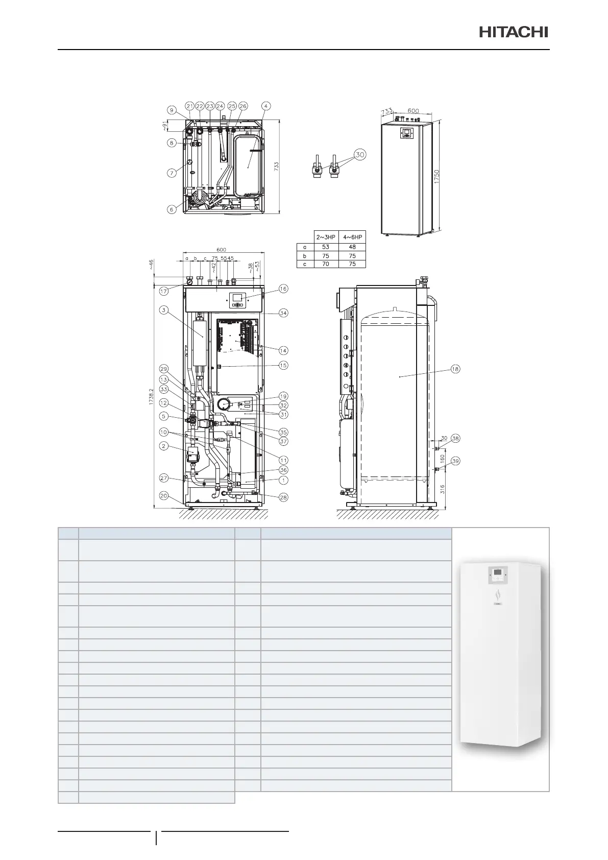 19 DHW tank heater + thermostat 39 Solar coil outlet connection