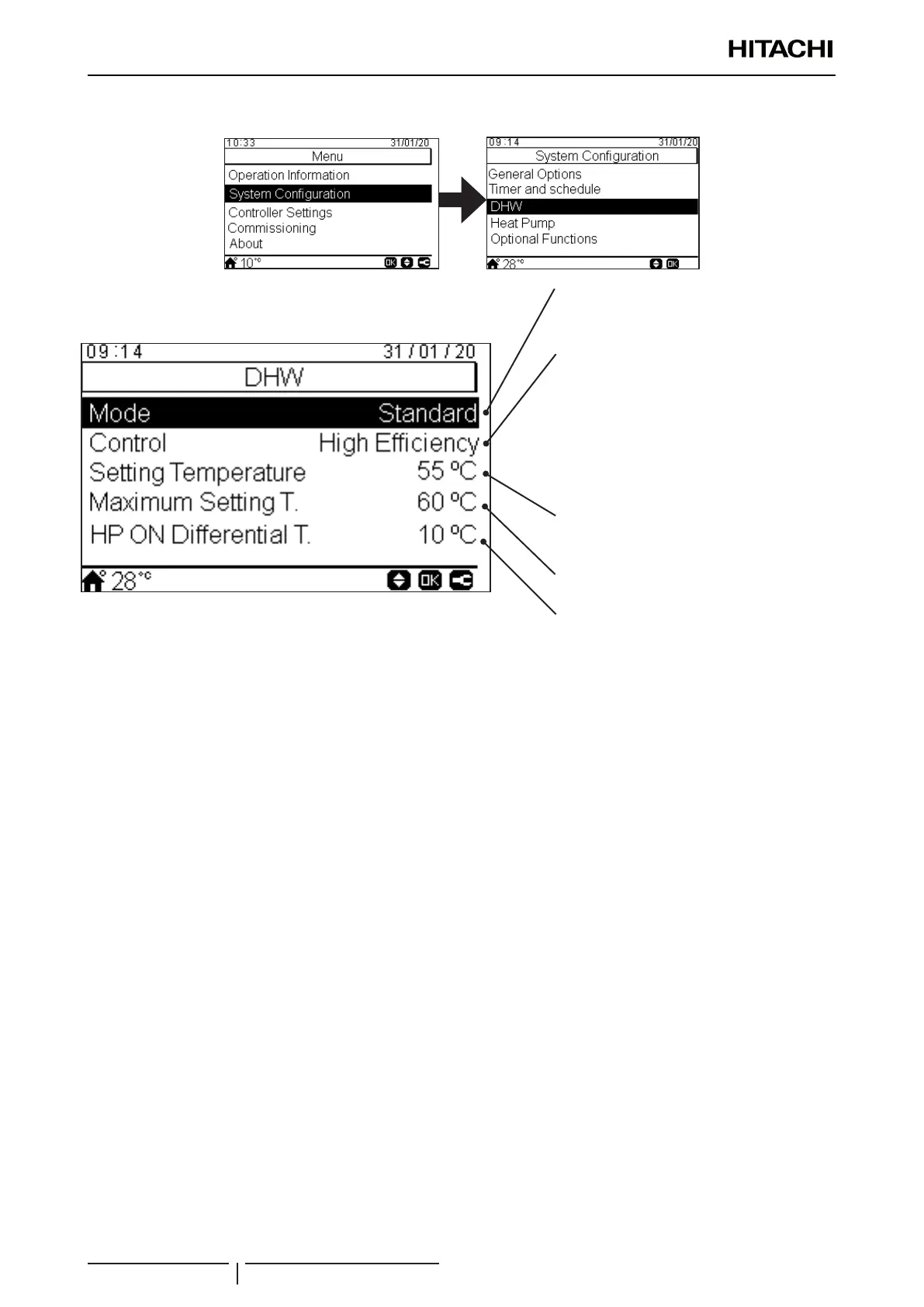 DHW heating operation starts when the temperature of the