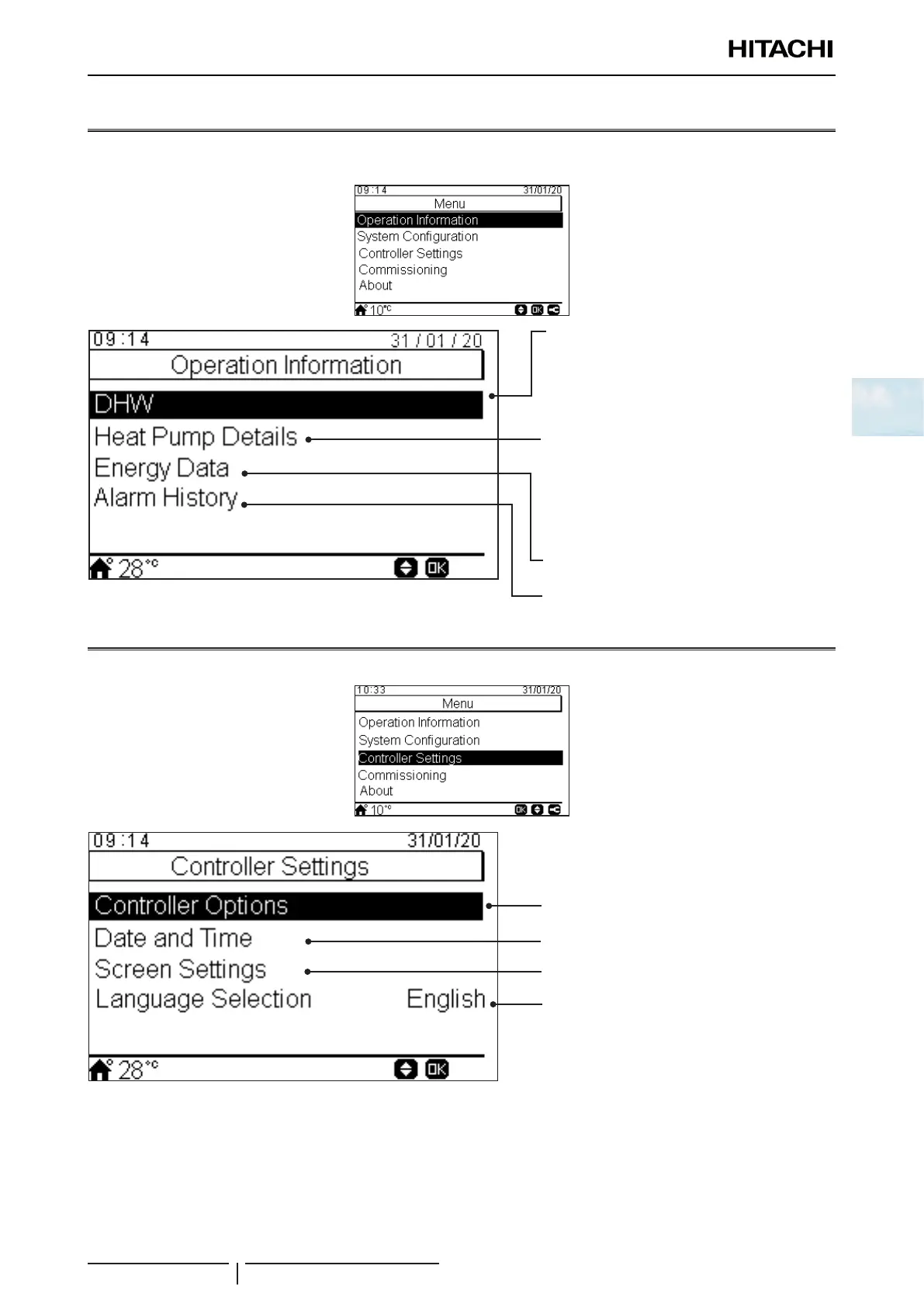 Inoperationinformationmenuitispossibletondthemostimportantsettingparametersofthesystembesidesthe