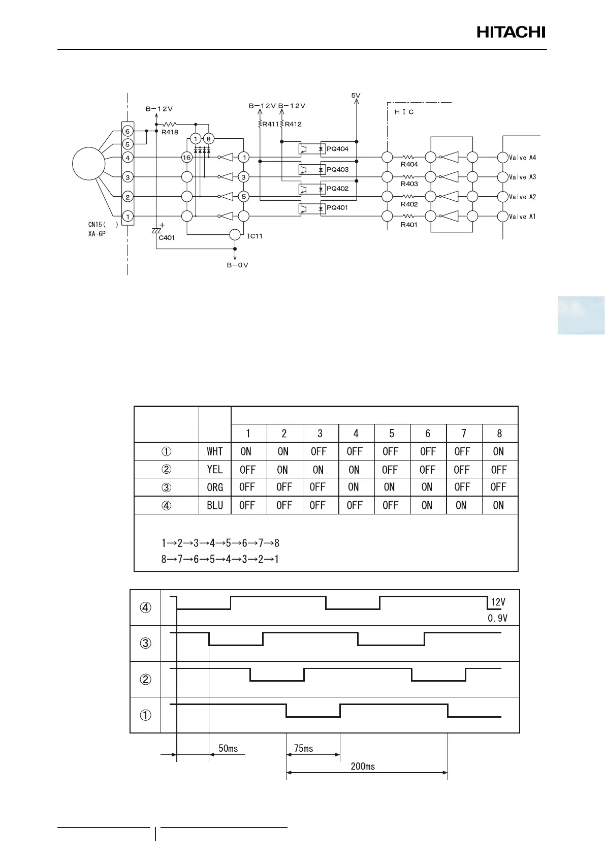 at pin 4 to 1 of CN15 by using a multimeter. If there is any pin with voltage that has not changed from 0.9V or 12V,