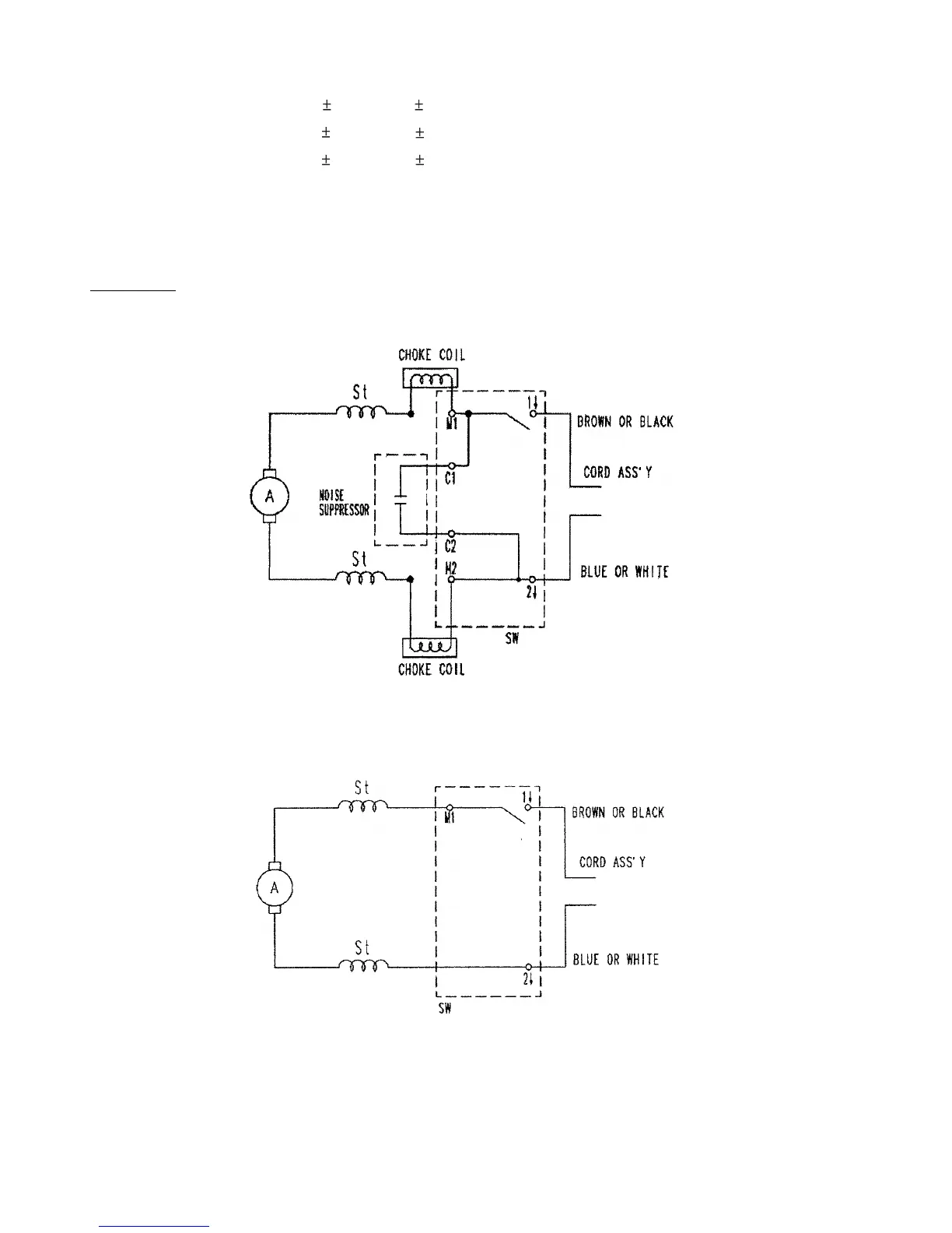 (b) Products without noise suppressor and choke coil: