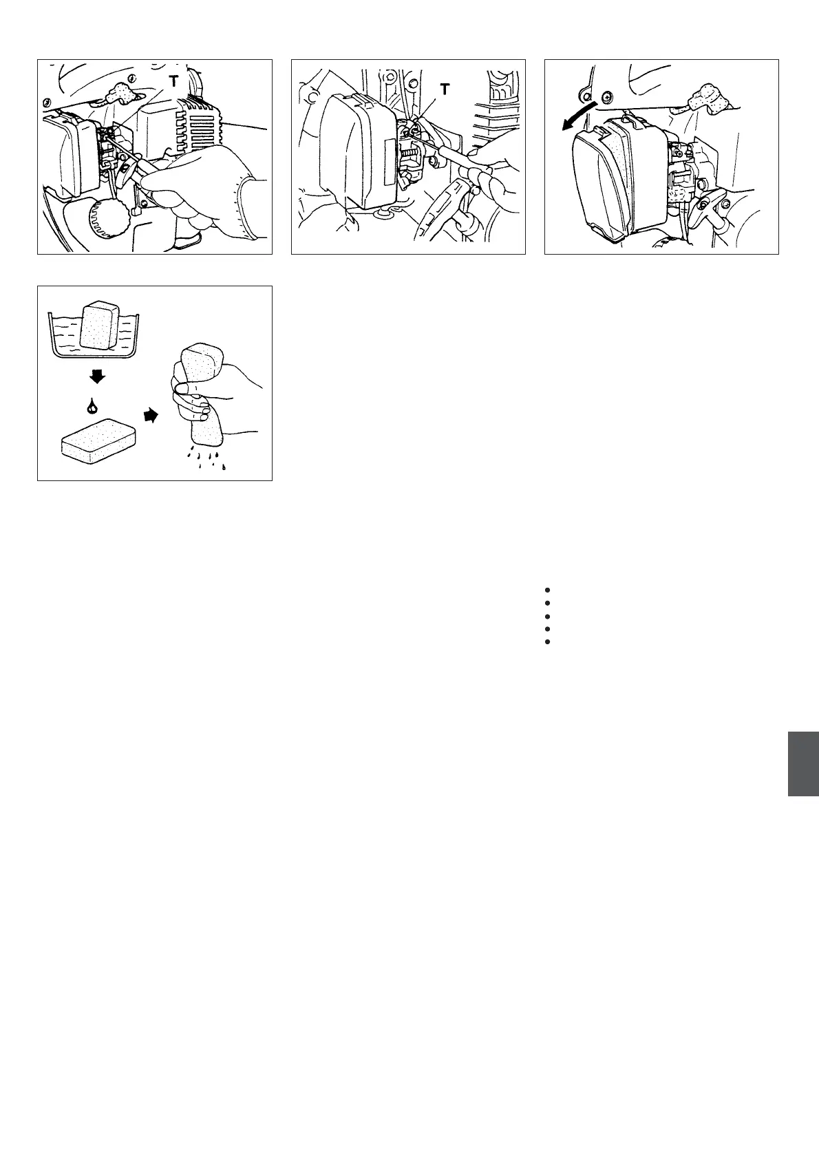 T = Justerskruv för tomgångsvarvtal.