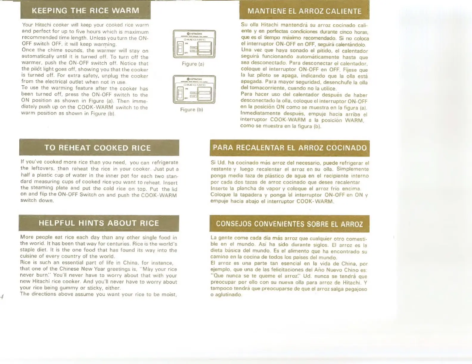 Hitachi RD-4053 - Keeping the Rice Warm; How to Reheat Cooked Rice; Helpful Hints About Rice