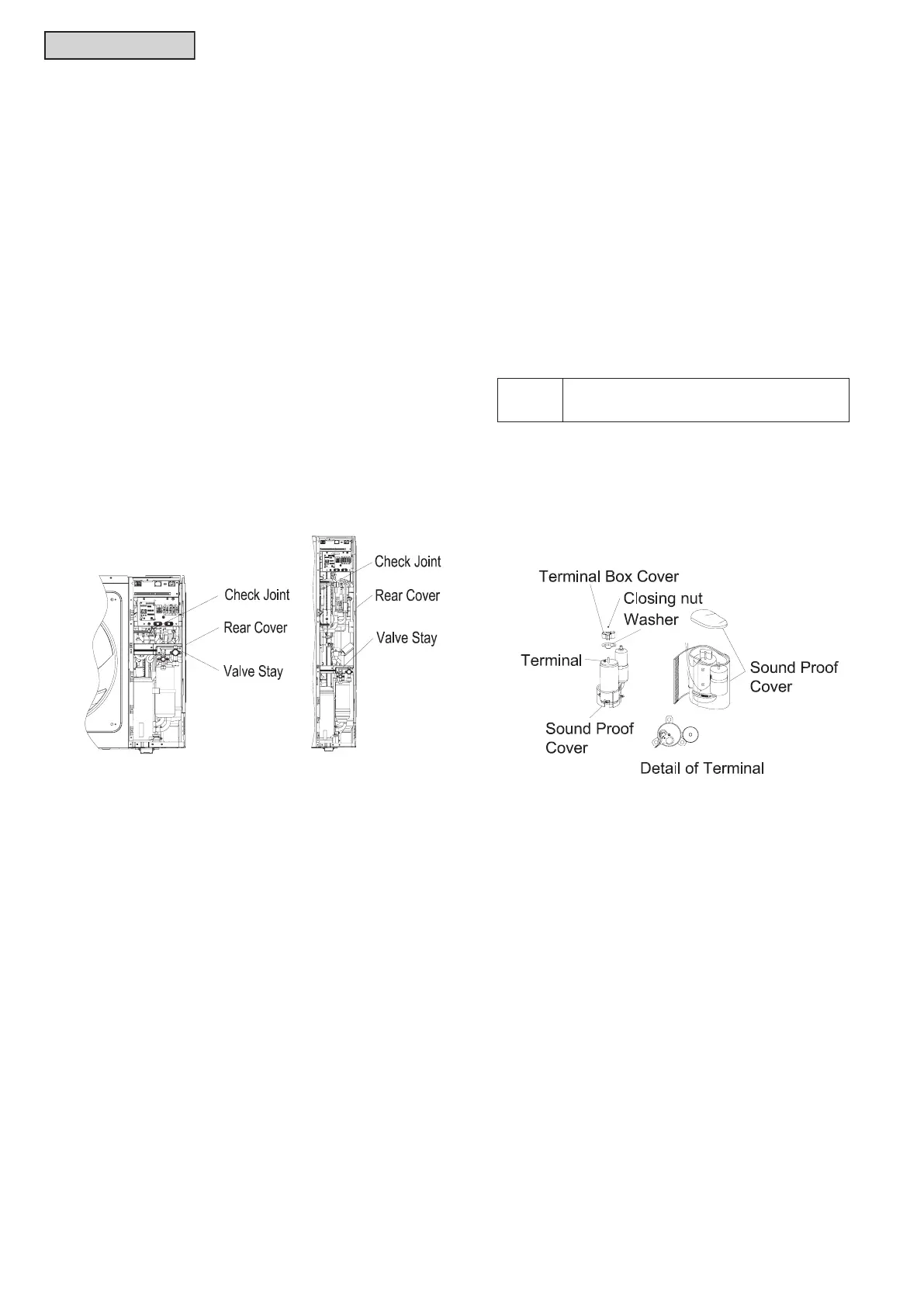 (4) Open the sound proof cover wrapped around the compressor. Remove the terminal box cover for the