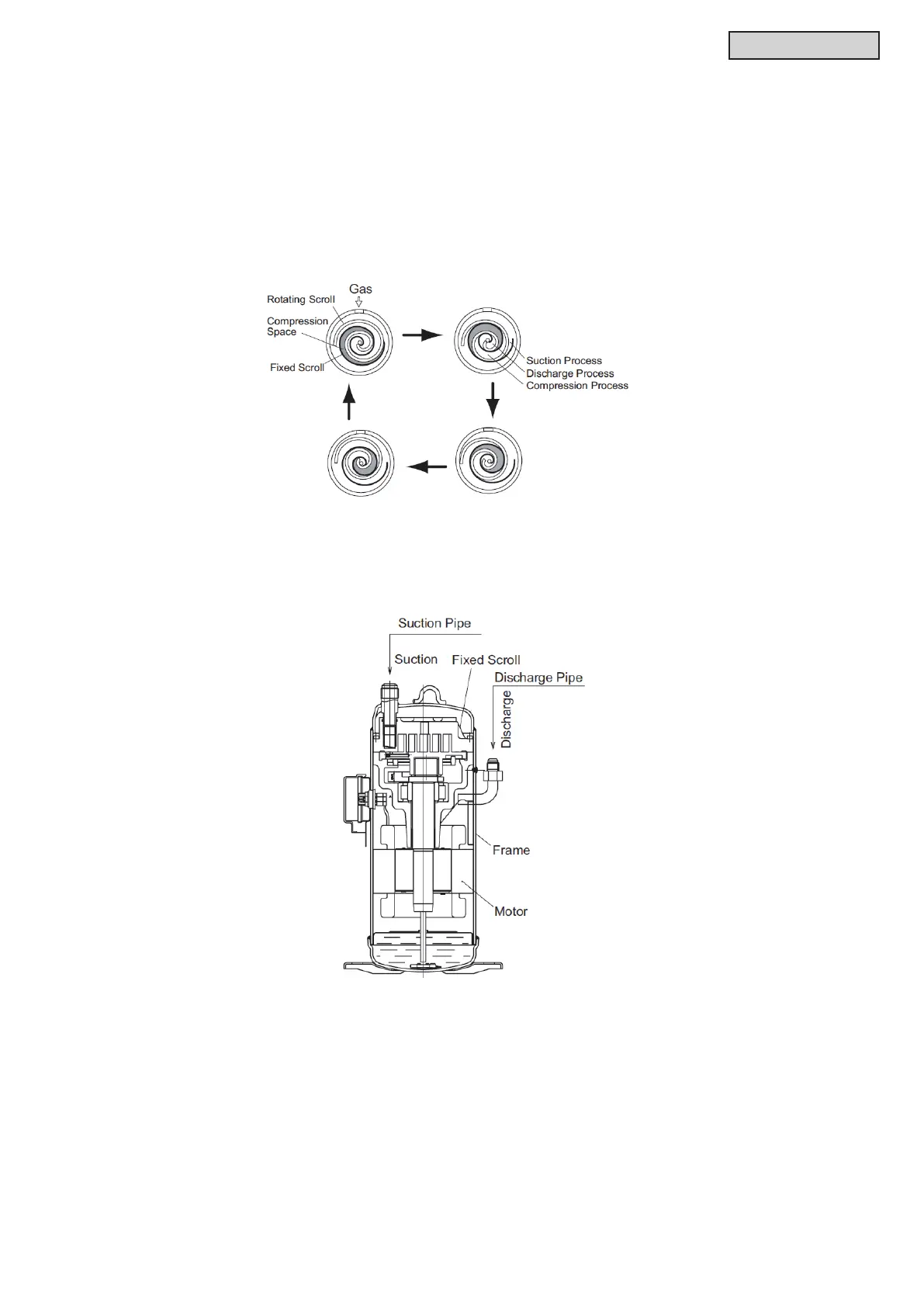 A sort of scroll compressor is adopted in the model of 7~12HP. It has the following advantages: